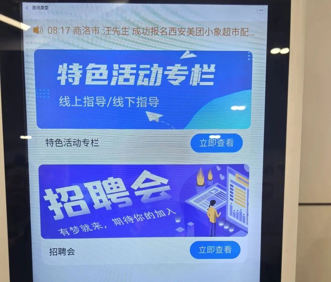 “以前想知道附近有哪些岗位,得专门去市场招聘会或者等街道贴通知,现在来补办医保本子的时候,顺手就在机器上查到了好几条招聘信息,又快又清楚!”