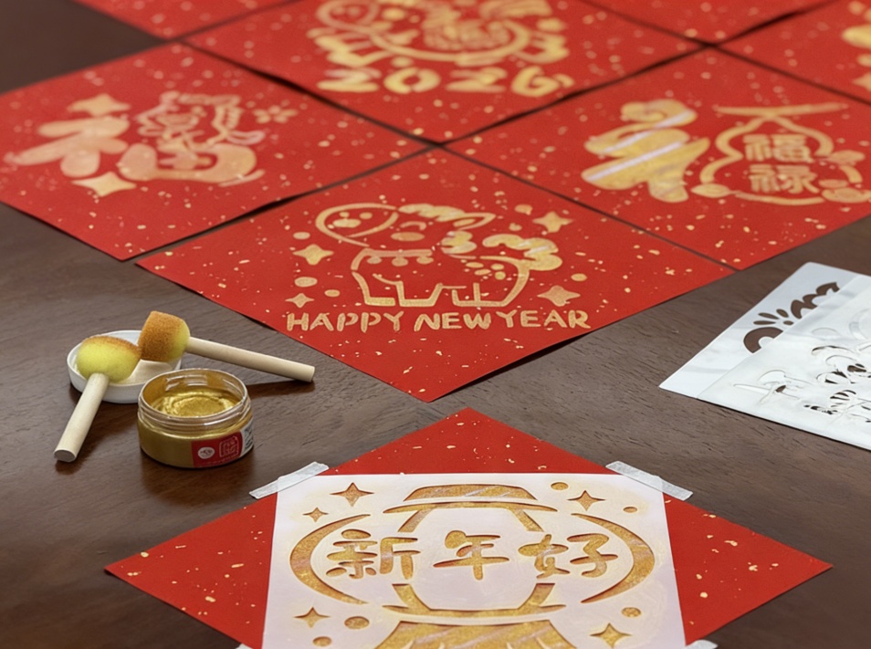福字拓印:红纸铺展、金墨轻拓,亲手将吉祥福字、马年瑞意拓印成型,把一整年的平安顺遂实实在在带回家。