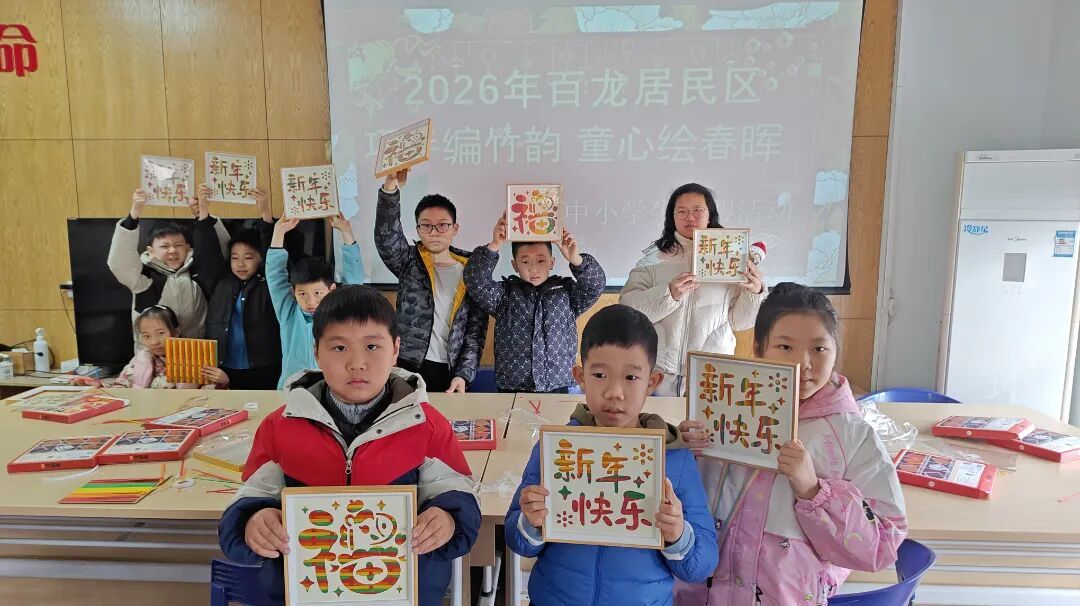 “巧手编竹韵 童心绘春晖”竹编画活动吸引了不少学生参与。工作人员从基础编织技法讲起,引导孩子们将竹编与绘画相结合,在经纬交织间制作承载马年祝福的作品。传统技艺不再停留在展板和宣讲中,而是在孩子们的指尖流转、生根。