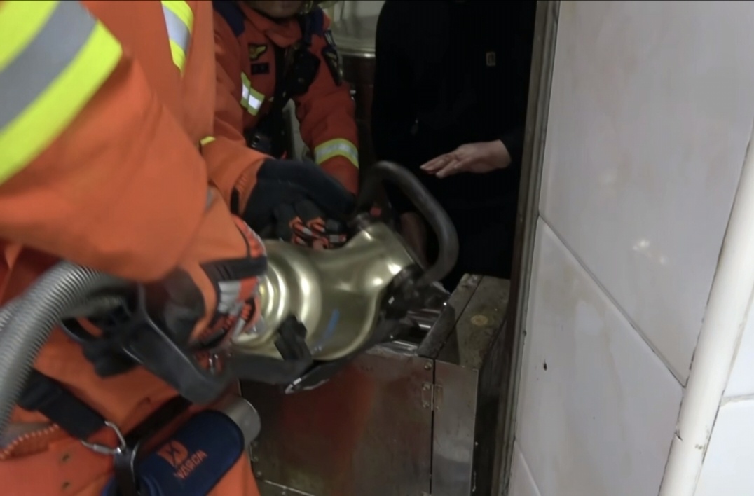 在确认设备已断电、做好安全防护后,消防员使用液压扩张器缓缓撑开压面机结构,为被困手掌腾出空间。经过快速处置,男子左手顺利脱困,随后由急救人员进行包扎处理。