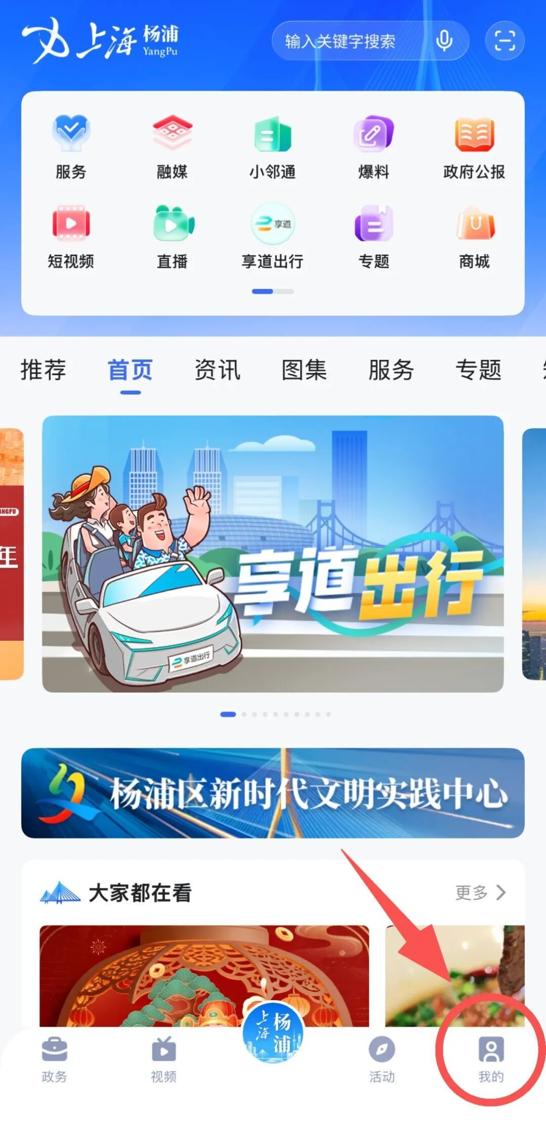 小伙伴们是不是 已经按捺不住“鸡冻”的心情 想要马上兑换领取了呢 别急 “保姆级”积分获取攻略已安排 看文章赢积分 扫描下方二维码 下载上海杨浦APP 打开“上海杨浦”APP点击 下方红色框中的头像 进入“我的”界面