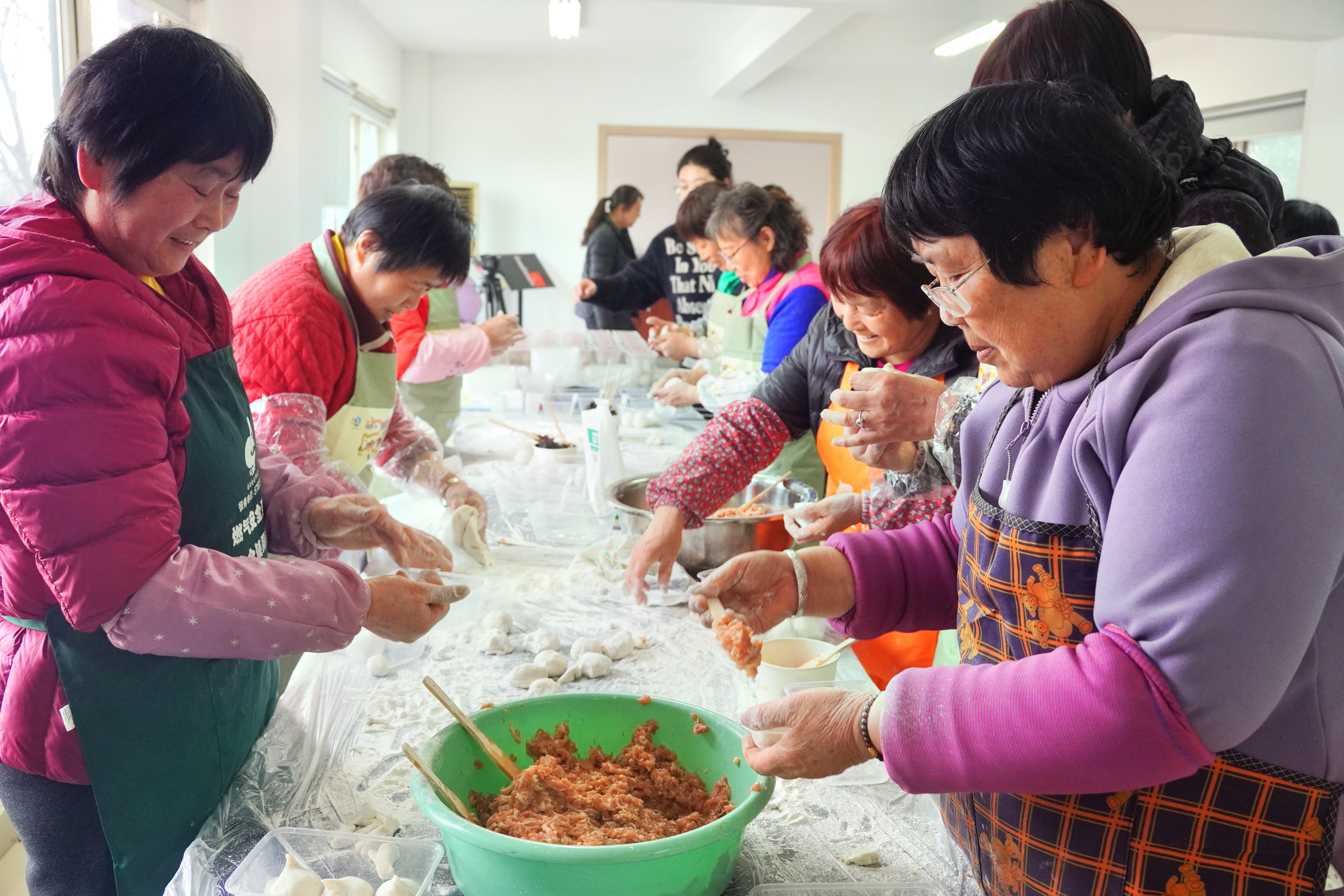 楼组长们在包汤圆