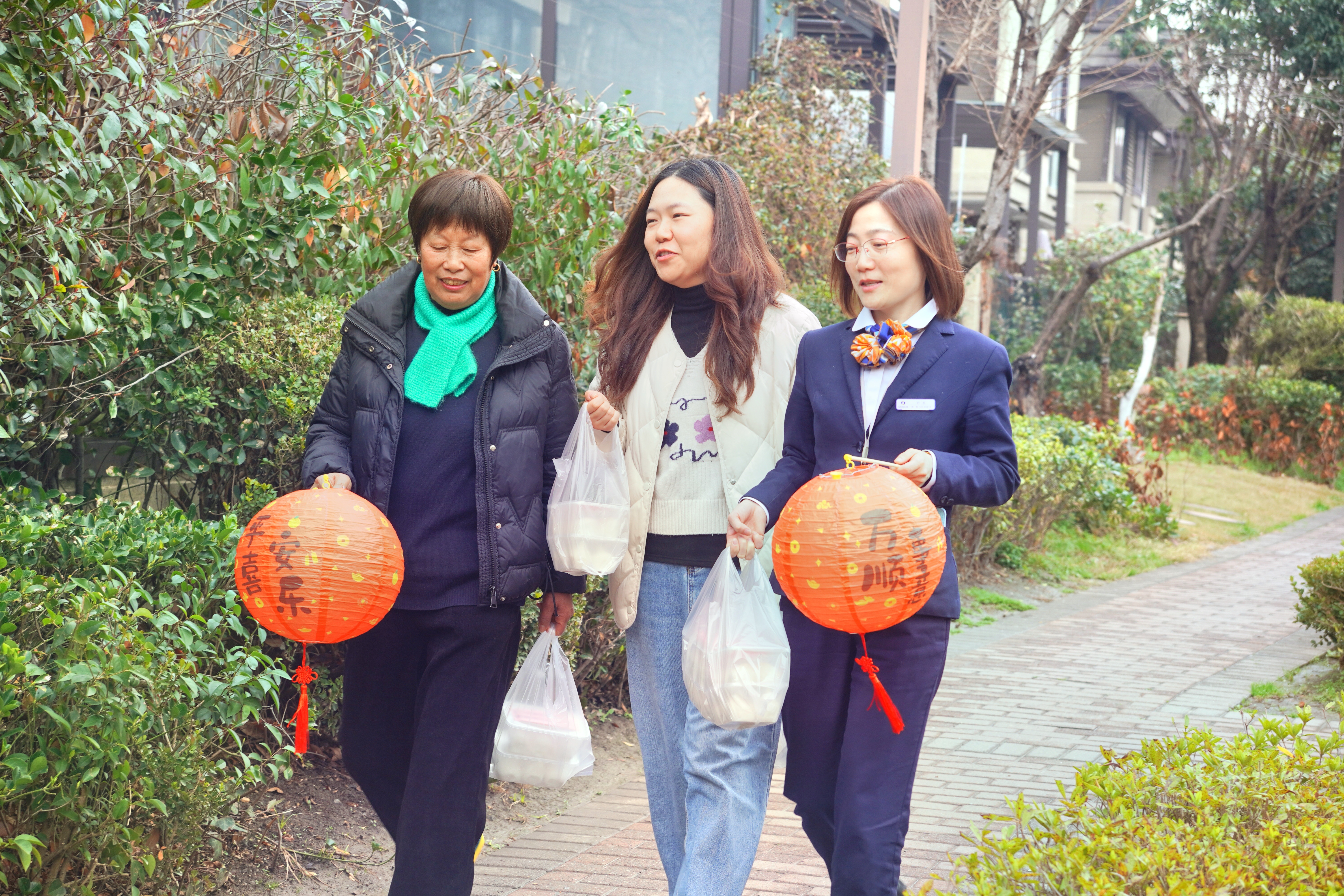 一颗颗圆润饱满的汤圆包好后,志愿者们提着汤圆、花灯,上门走访慰问社区高龄老人。