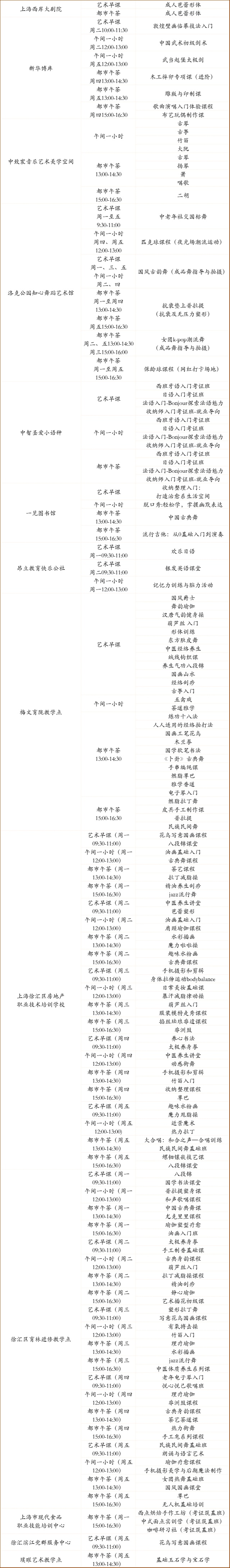 上海市群众艺术馆总校课程