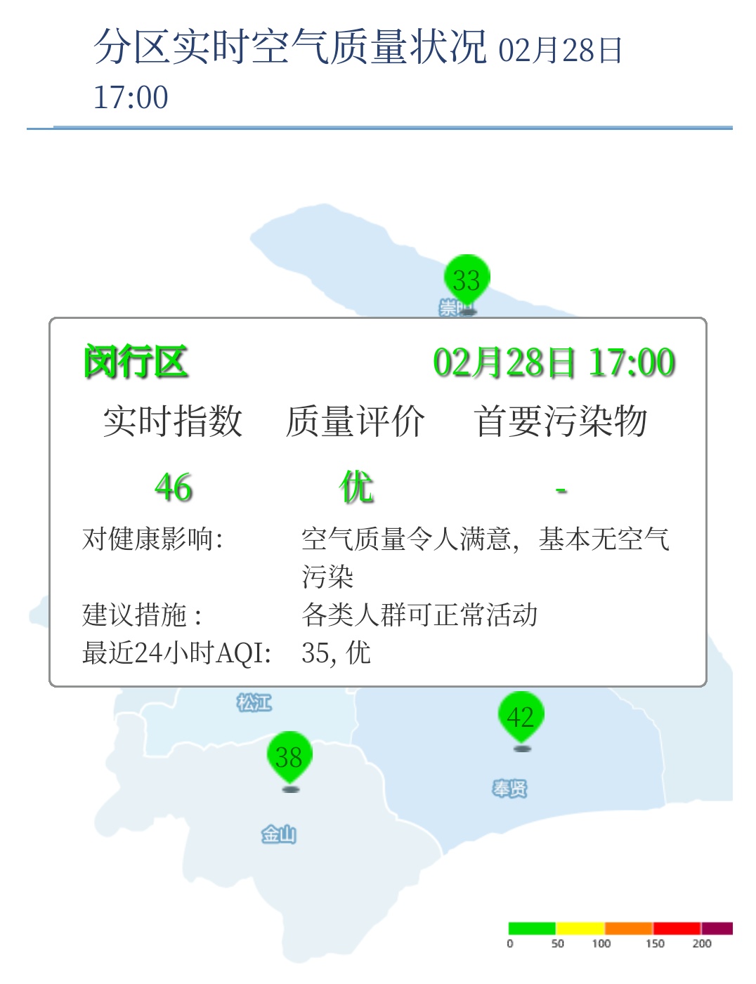闵行区AQI为46,优,