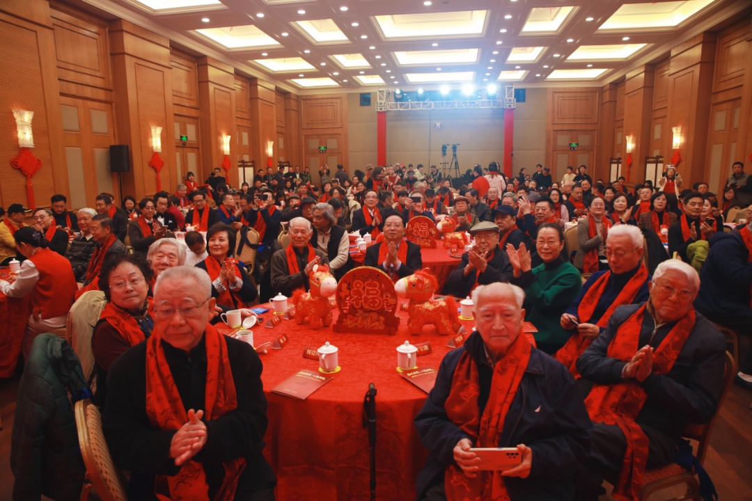 中国文联荣誉委员尚长荣,上海市文联荣誉委员何占豪、蔡正仁、于本正,市文联主席团、各文艺家协会的老中青艺术家,各区文联代表等出席活动。96岁的书法家许宝驯,84岁的昆剧表演艺术家梁谷音,84岁的电视艺术家、导演张戈,72岁的摄影家郑宪章,60岁的雕塑家蒋铁骊作为属马文艺家代表登台接受“贺岁礼”。市书协顾问刘一闻向市文联捐赠了他为庆祝市文联成立75周年特别刻制的“年华璀璨”纪念印章。茶话会上,来自各文艺家协会的名家新秀轮番登台,以艺会友,展现上海文艺人的“龙马精神”。电视节目主持人何卿、滑稽演员潘前卫担任此次茶话会的主持。