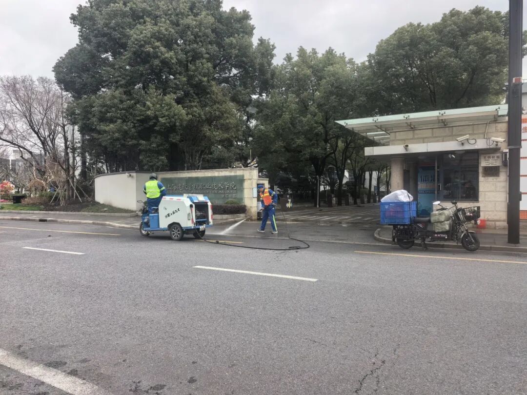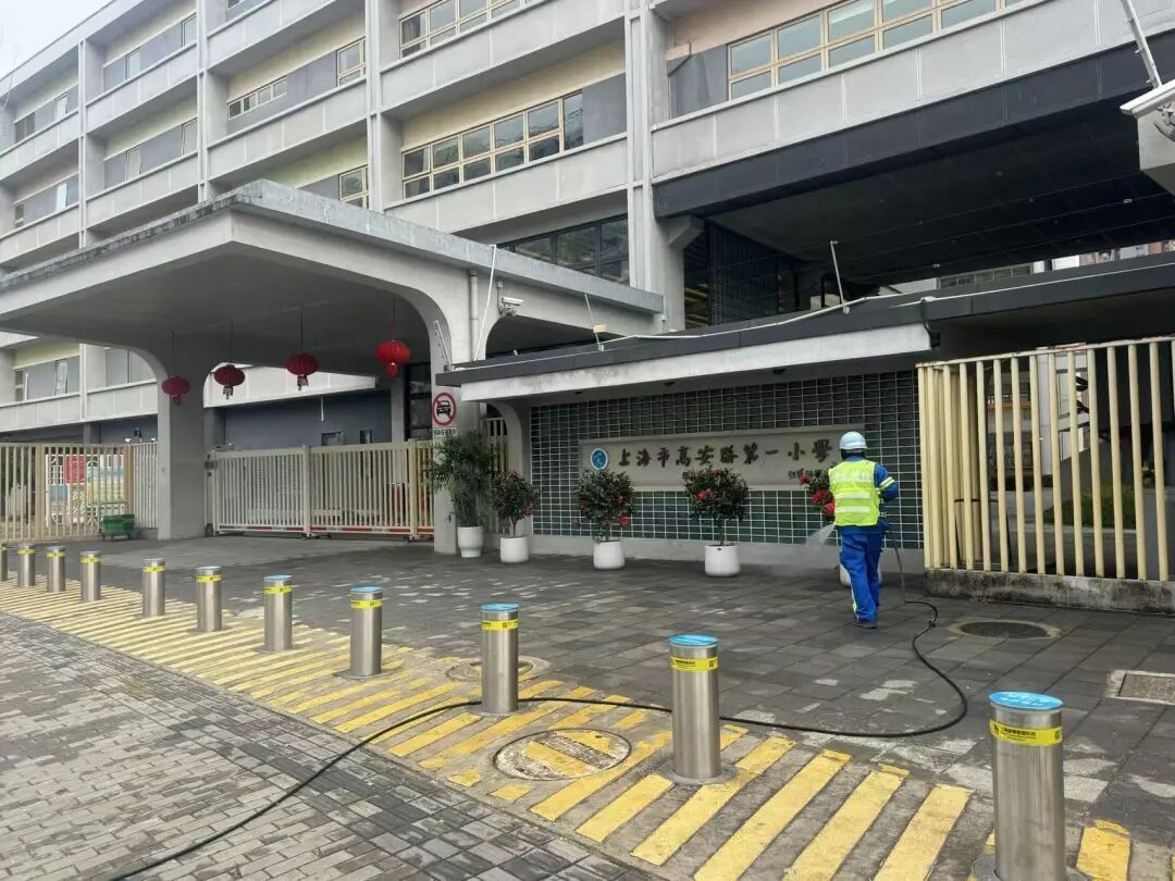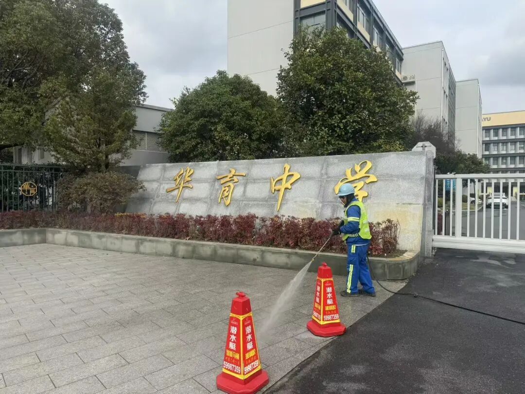 对学校门口开展清洗作业