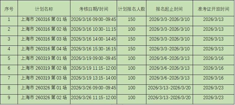重要通知:自2026年3月起,上海地区将正式启用新线下机考考点。新考点位于中心城区核心地段,交通便捷度全面升级。现将考点详情、3月完整场次安排及重要提醒公告如下: