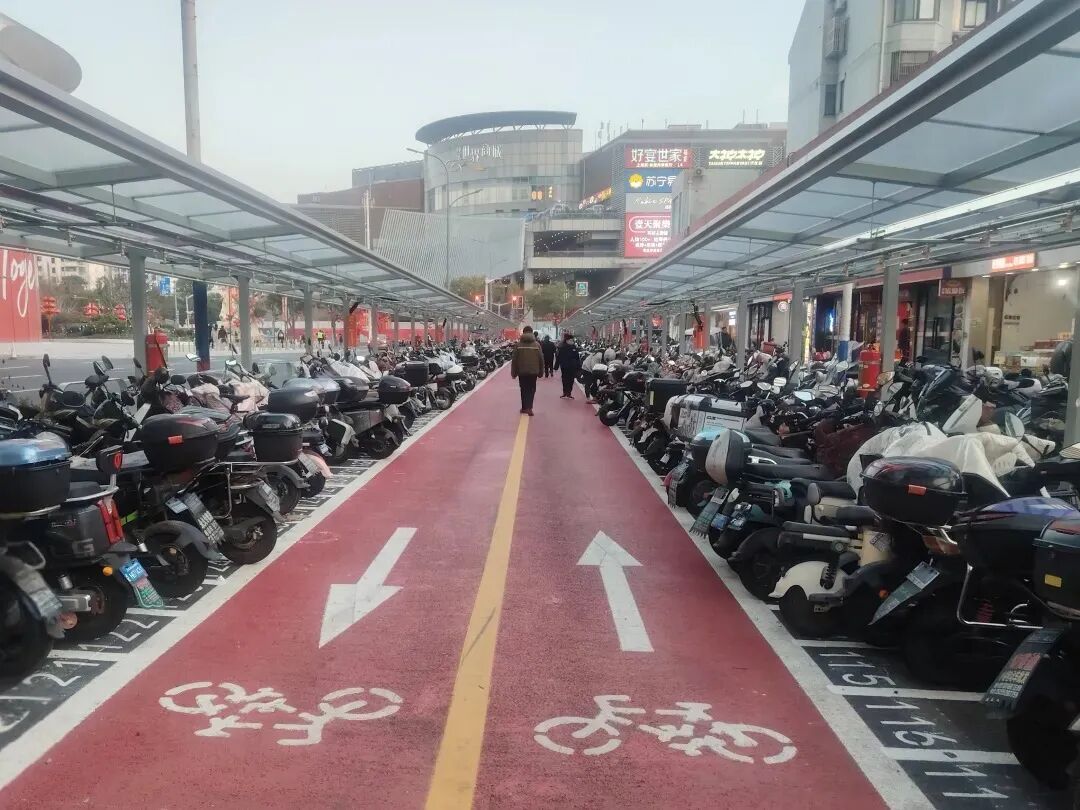 据现场管理人员介绍,整治前的南广场区域,非机动车(包括私人电瓶车和共享单车)混杂停放,高峰期停放量一度超过1100辆,密度极高。密集停放的电瓶车一旦发生自燃,极易引发连环火灾,后果不堪设想。此外,以前的停放模式严重堵塞了江南苑小区的消防通道和大型人行横道,不仅影响居民安全,更直接威胁周边商圈的消防安全。