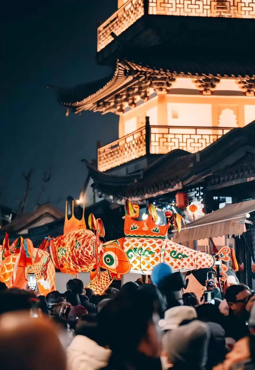 元宵当晚,最受期待的鱼灯巡游重磅返场!一盏盏鱼灯摇曳前行,重现“一夜鱼龙舞”的热闹场景,氛围感直接拉满,快来赴这场中式浪漫之约。