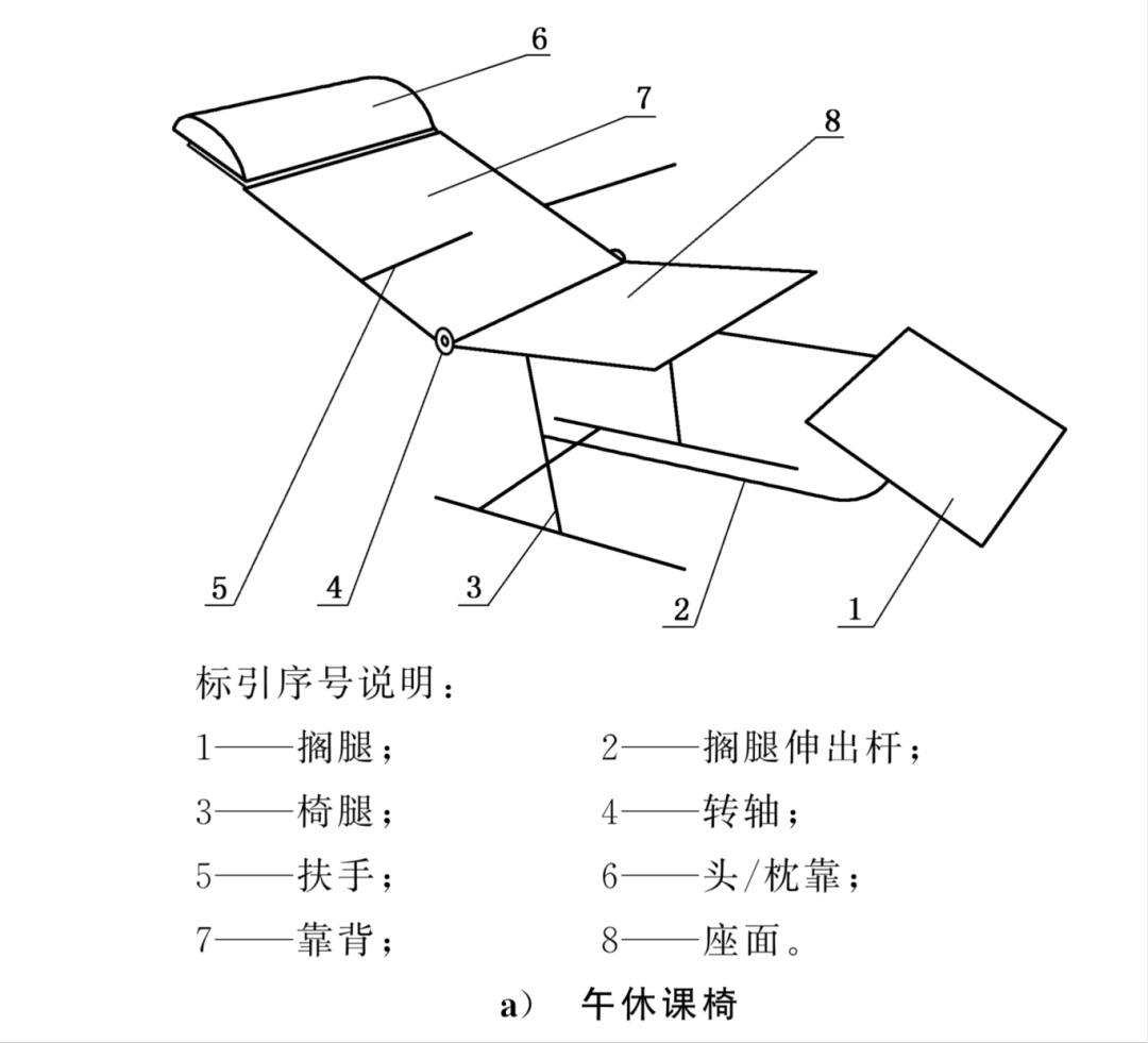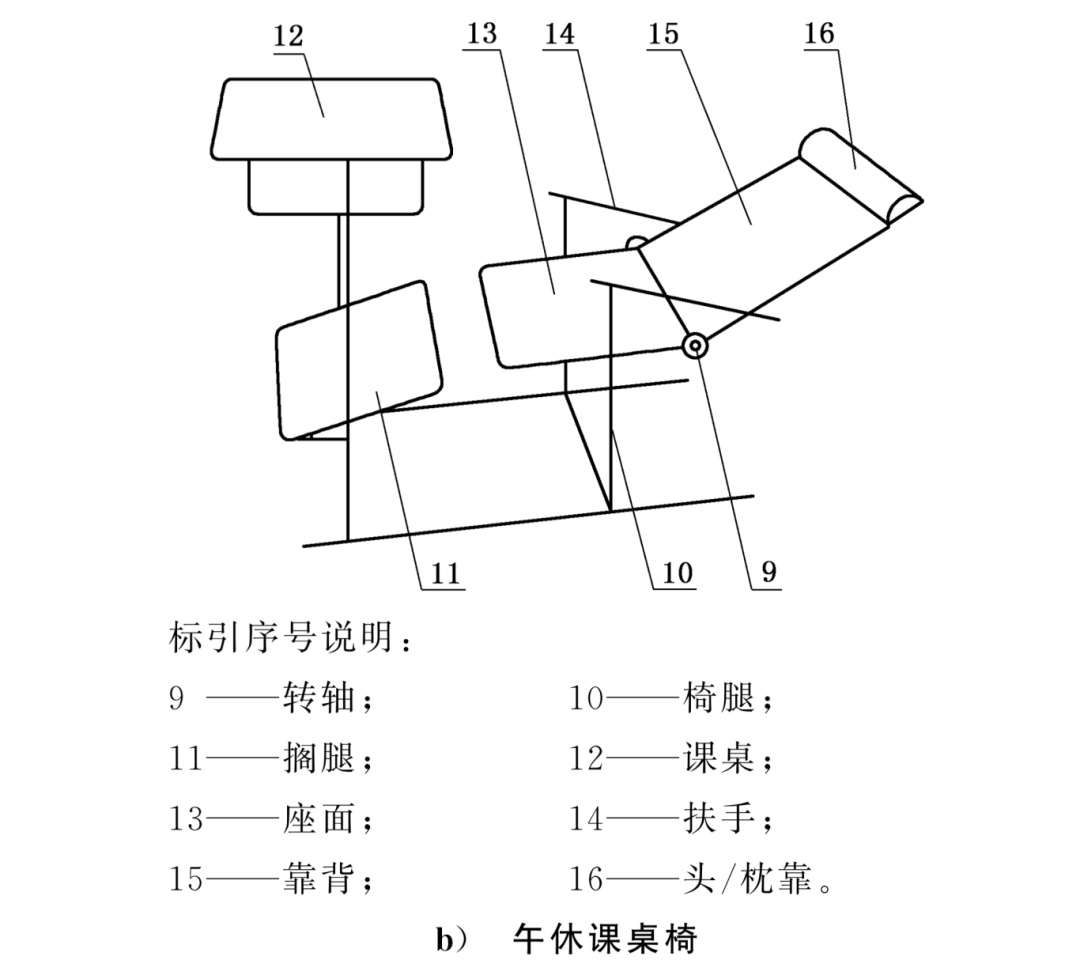 先搞懂:午休课桌椅分两种,用法大不同 午休课桌椅是指通过调节,能为学生上课和午间休息提供相应支撑的桌椅类家具。 新国标明确,午休课桌椅按功能实现形式分为两类,家长可以对照学校的设备看看: 午休课椅:椅子能独立完成午休功能,不用依赖课桌,展开后就能躺卧。 午休课桌椅:桌椅需要联动配合,调整后才能形成完整的午休支撑,通常稳定性更强。 不管是哪种,核心都是“一物两用”——上课能坐能学,午休能躺能歇,不浪费教室空间。 想知道桌椅好不好用,先看这几个关键数据,记不住可以直接对照检查: 躺姿总长度≥1050mm:展开后从搁腿外沿到头顶支撑的距离,够长才能让孩子舒展身体。 靠背倾角≥135°:靠背和座面的夹角要够大,避免低头驼背睡,减少颈椎压力。 头/枕靠、座面和搁腿有讲究:头/枕靠有效宽度≥180mm、长度≥100mm,搁腿有效宽度≥250mm、长度≥100mm,座面宽度≥360mm,支撑到位才更舒服。 课桌高度可调节:小学桌高455~730mm,中学桌高565~790mm,同时还得满足“桌净空高与座面配合高差”小学≥110mm、中学≥150mm,适配不同身高的孩子。 孩子的安全是第一位,新国标对安全性能划了明确底线: 表面理化要求:整体无毛刺、锐棱,仿藤制件要耐老化和耐冷热循环,封边条强度要高,塑料桌椅面要耐污染,金属件喷涂层无锈蚀、剥落和裂纹。 有害物质不超标:甲醛、重金属等必须符合《家具中有害物质限量》(GB18584)标准。 此外,14周岁及以下学生使用的桌椅还要额外满足《婴幼儿及儿童家具安全技术规范》(GB 28007)的要求。 承重&稳定性过关:侧面挂钩能挂5kg重物不损坏、不倾翻;课椅躺卧时加载重物不会塌,升降、折叠机构反复使用也不松动。 软包阻燃:带软包的桌椅,阻燃性能要符合GB17927规定,降低安全隐患。 不管是学校采购,还是家长想了解情况,这几个细节一定要盯紧: 看标志:合格产品必须有名称、规格、用料、执行标准、合格证明、生产日期,还有生产者信息,缺一不可。 查警示标识:有折叠或升降功能的桌椅,必须标注“警告!小心夹伤”“危险!请勿频繁升降玩耍”等警示语,字体要清晰(不小于四号黑体)。 看使用说明:里面应写清适用年龄段、安装要求、保养方法等内容,对于需要安装课桌椅的还要有“注意!只允许成人安装,儿童勿近”的警示语。 简单测试:用手晃一晃桌椅,不松动、无异响;摸一摸边缘,无毛刺;展开搁腿和头枕,伸缩灵活、锁定牢固。