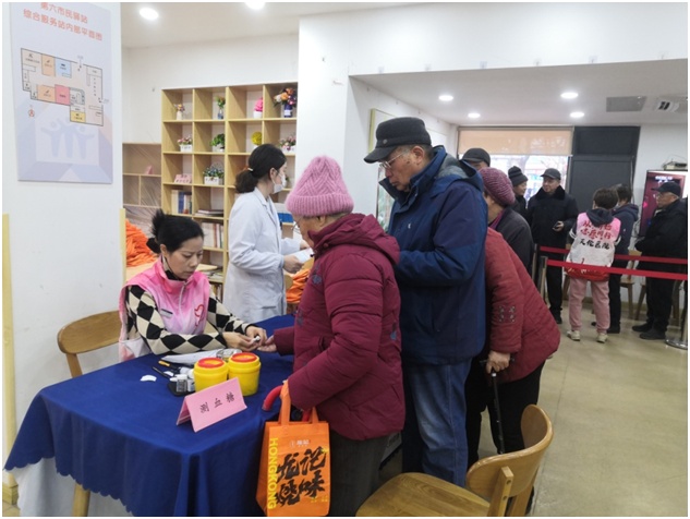 2月10日,第六市民驿站党群服务站与天伦医院开展共建,组织了一场“健康过大年”的服务活动,为驿站周边的老年居民们送上贴心关怀。活动现场提供了多项健康服务,包括测血糖、量血压、中医咨询、口腔咨询、推拿理疗等,百余位老年居民享受到了相关服务。大家在驿站的欢声笑语中,感受到了社区大家庭带来的温馨与便利。
