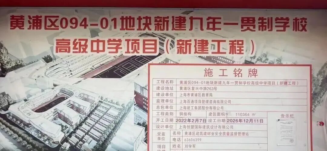 黄浦区094-01地块东至顺昌路、南至合肥路、西至黄陂南路、北至复兴中路。在此,向明初级中学与卢湾二中心小学将新建一所九年一贯制学校。新校的落地,将进一步优化黄浦区的基础教育资源布局。现场铭牌显示,新建工程计划2026年12月竣工,预测将于2027年开始招生。