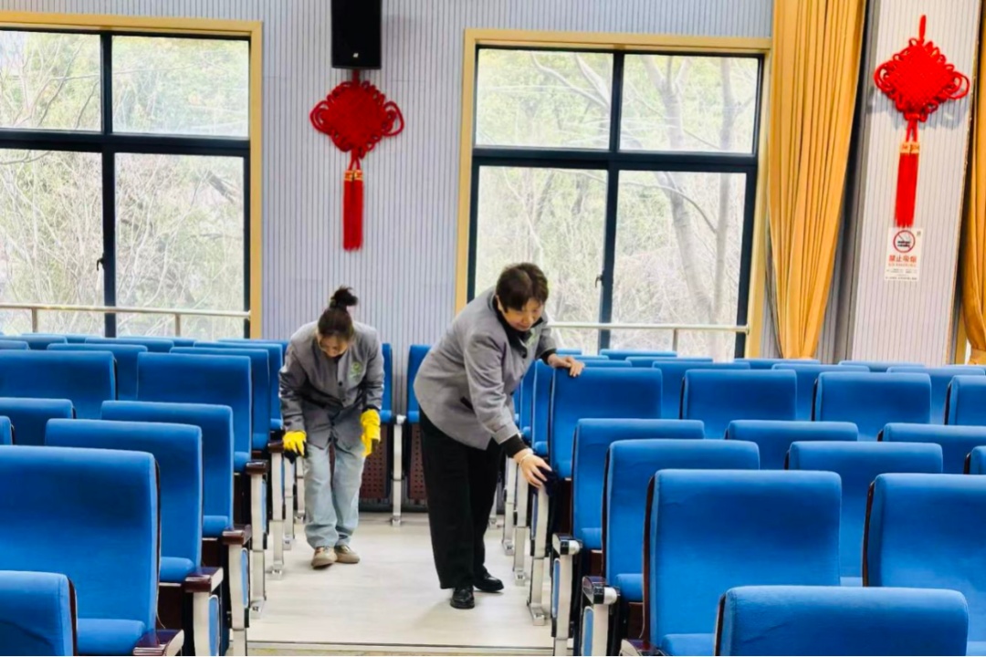 美兰湖中学对消防设施、监控系统等重点区域逐一开展安全检查,逐项核查设备运行状态,消除安全隐患,后勤人员对食堂、报告厅等公共场所进行深度清洁与消毒,清理每一个卫生死角,筑牢校园卫生防线。