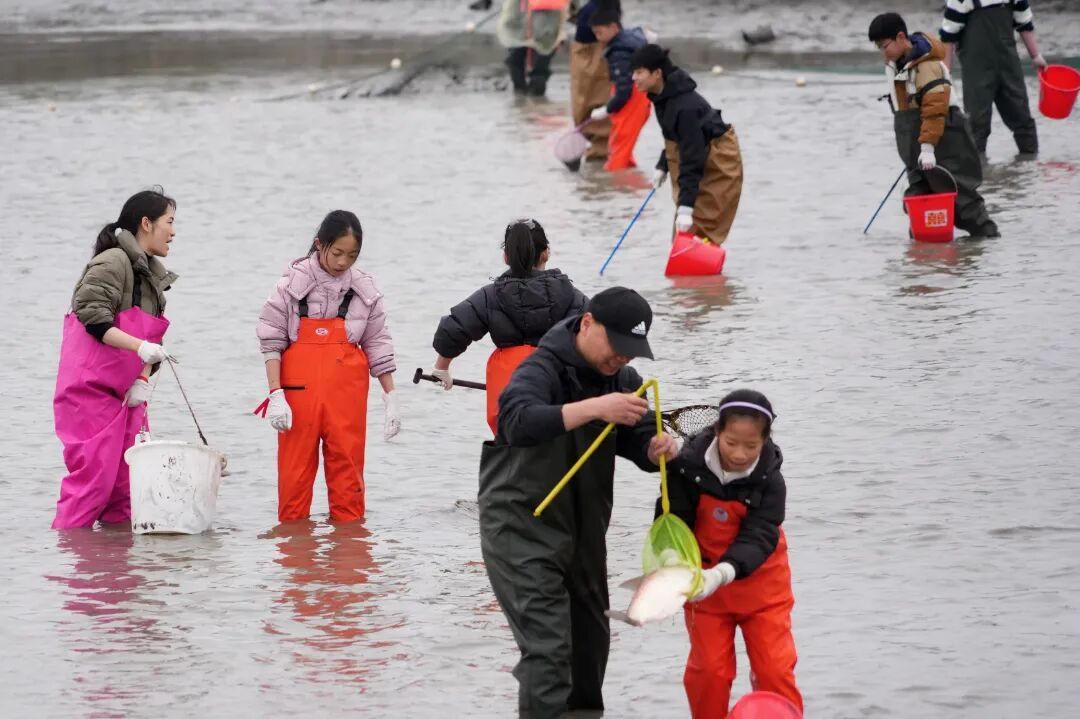 家长傅先生惊叹:“这简直是在肉搏,带两个小孩一起摸鱼,可累坏了。”