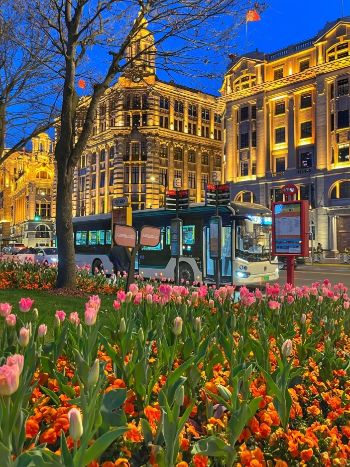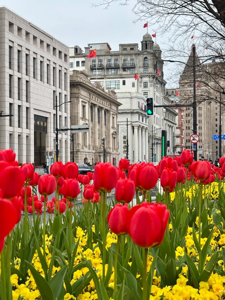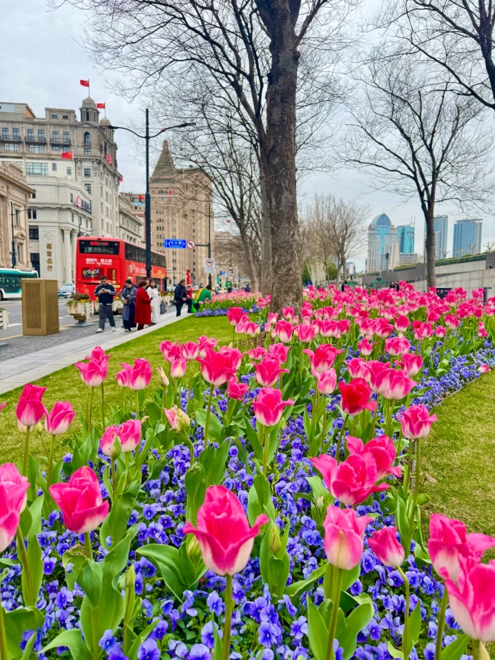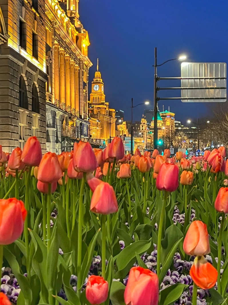 观赏点位:外滩(中山东一路沿线)、南园滨江绿地(南园公园)、琴键春园(黄浦滨江段)、人民公园