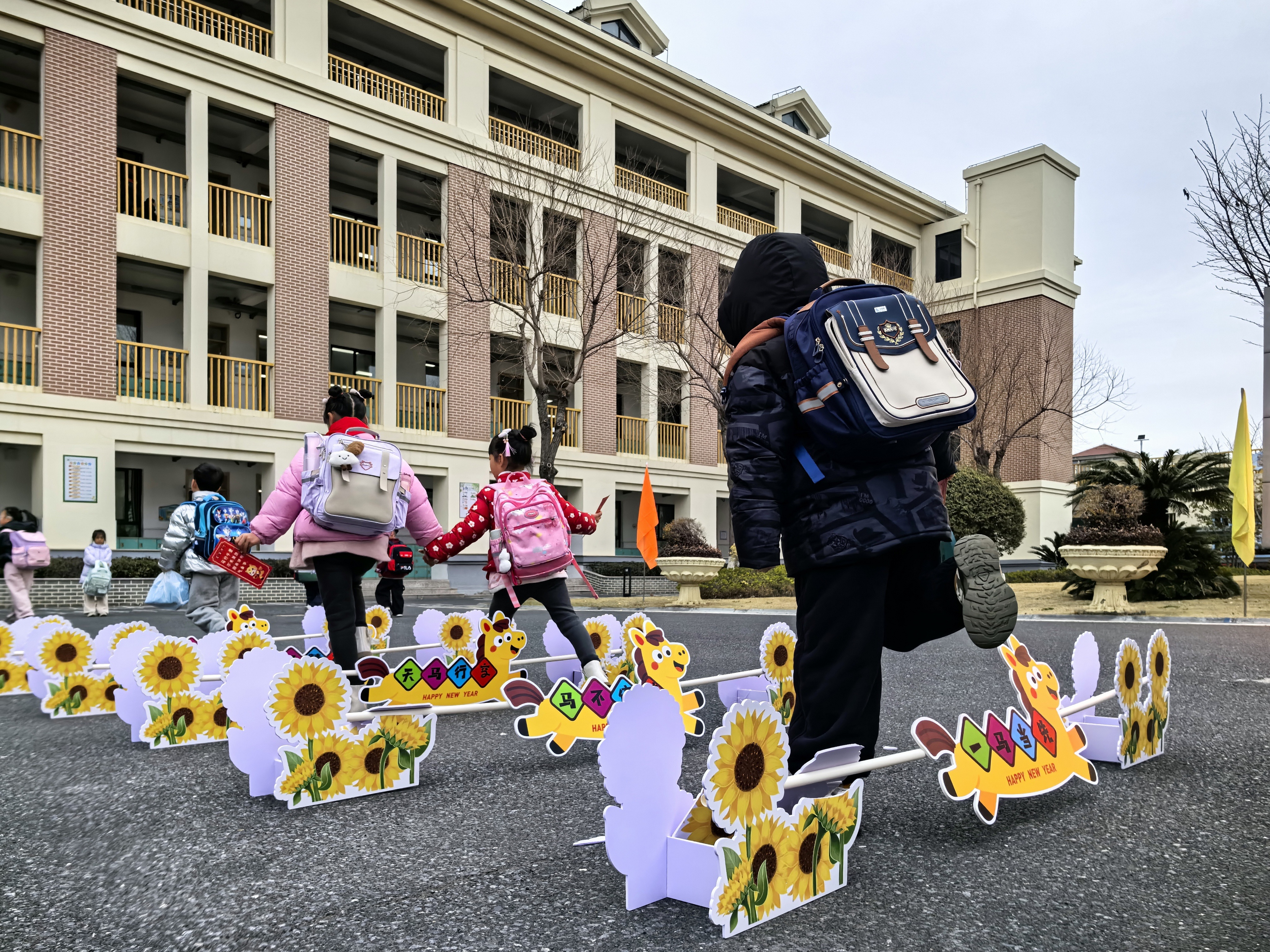 集中返校日,除了发放新书等例行安排外,不少学校还为孩子们准备了丰富多彩的启新活动。3月1日,在松江区教育学院附属实验学校,以“马”元素贯穿全程的主题文化活动让孩子们惊喜满满。