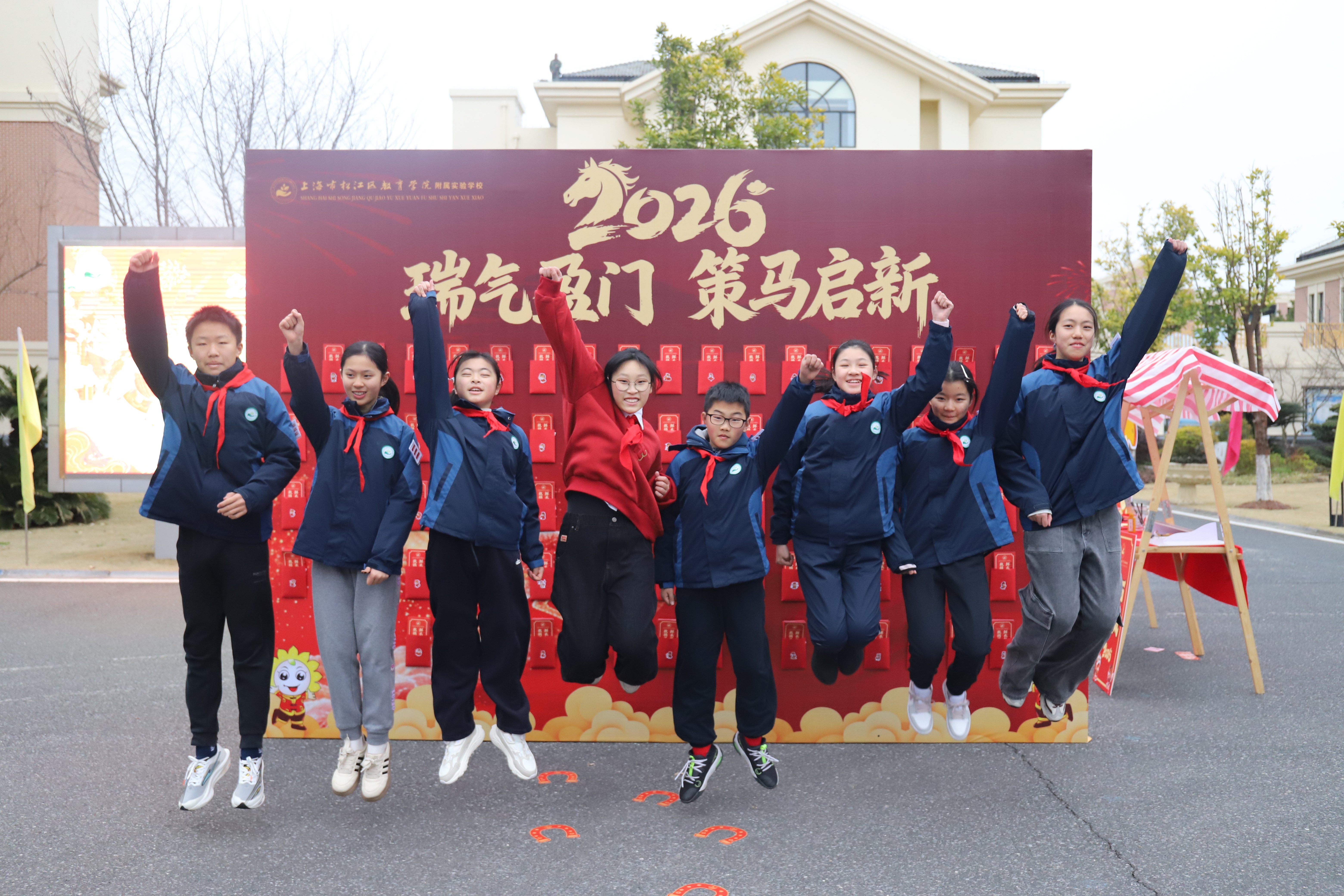 孩子们在“策马启新”主题墙前欢呼