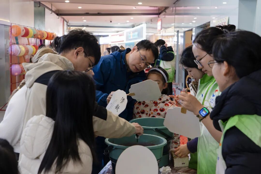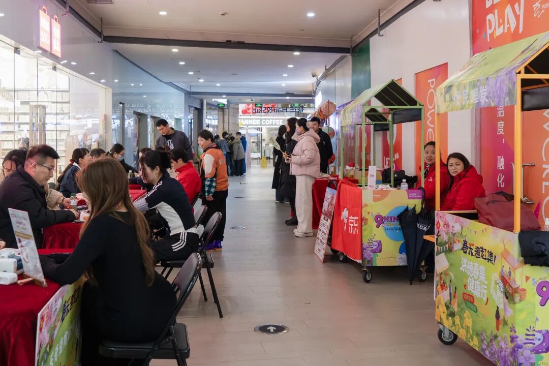 集市位于商场1楼中心连廊通道(野人先生旁),设置有“便民服务区”“医疗健康区”和“元宵游戏区”,将志愿服务、健康守护与民俗趣味融为一体,吸引了众多居民前来参与体验。