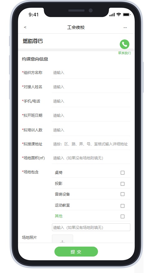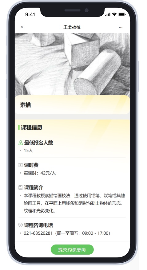 3.点击“提交预约意向”,填写“约课意向信息”并“提交”,工作人员会在5个工作日内联系。