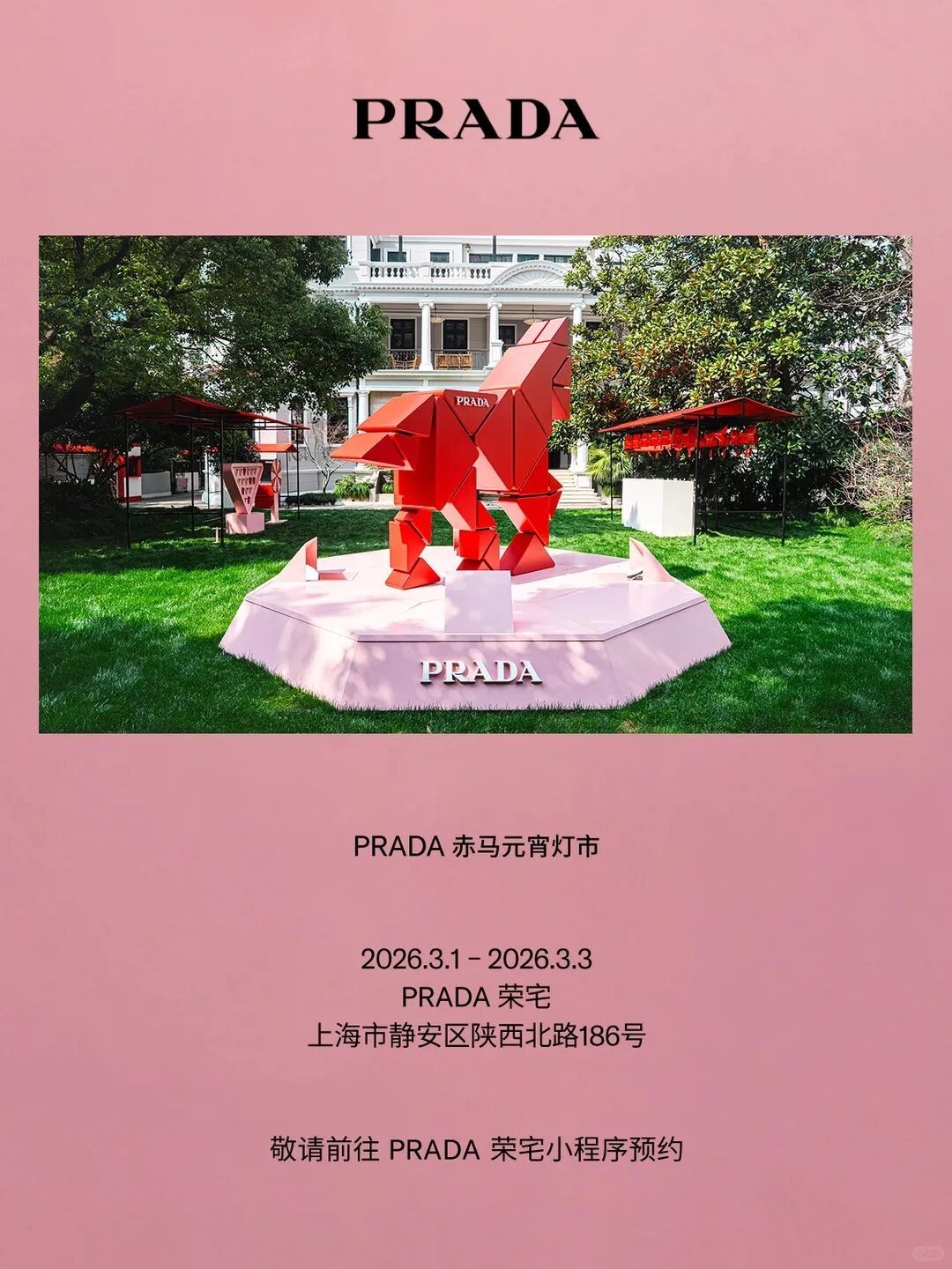 Prada赤马元宵灯市自即日起接受公众预约,并持续开放至2026年3月3日。