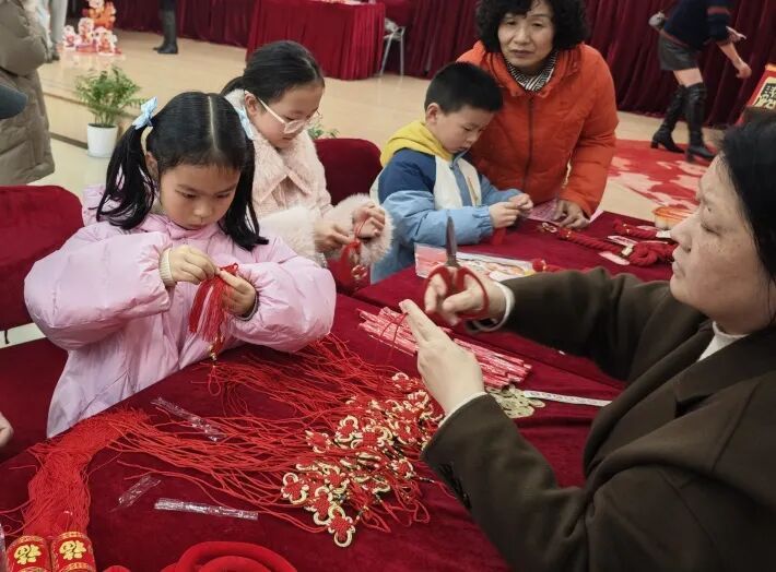游园会还特别设置了非遗文化体验区,让居民近距离感受传统技艺的魅力。剪纸老师现场展示精湛技艺,红纸翻飞间,一幅幅窗花跃然眼前。居民们跟着老师一步步折叠、裁剪,创作出属于自己的作品,带回家装点氛围。面塑摊位前围满了好奇的孩子和居民们。面塑艺人巧手捏制,一个个栩栩如生的元宵娃娃、生肖动物很快诞生,引得大家啧啧称奇。中国结编织区同样热闹,居民们在老师的指导下,用红绳编织出平结、吉祥结,寄托着团圆美满的祝福。