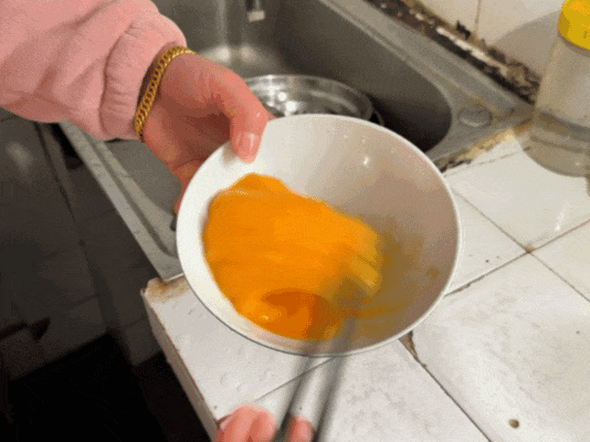 小火烧热铁勺,薄油润底,舀一勺蛋液轻转,摊成匀薄蛋皮;趁蛋皮微凝,放上一小撮肉馅,轻巧对折、轻压边缘,一只圆润饱满的蛋饺便成型。金黄软嫩,形似元宝,寓意招财进宝、岁岁安康。