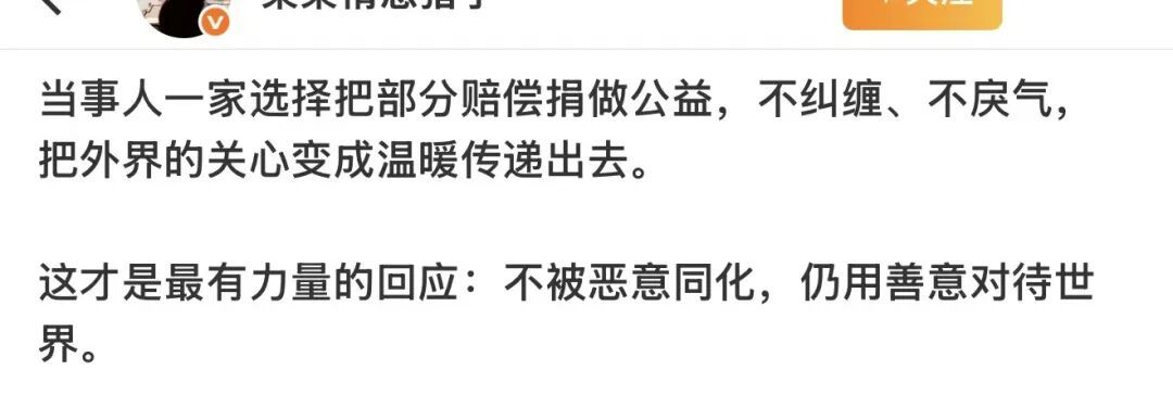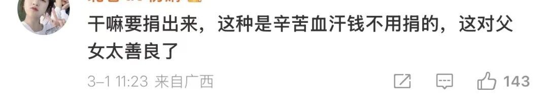 同时也有网友表示:这笔赔偿是他们应得的,就算不捐也完全合理,不必道德绑架。