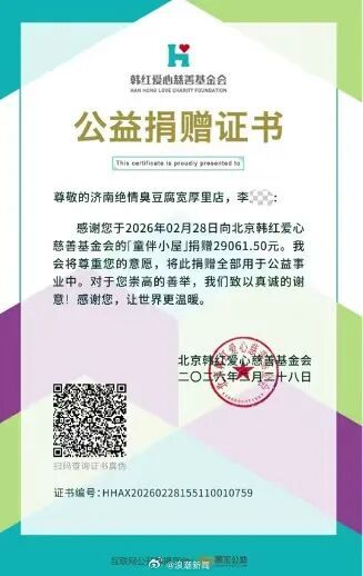“这件事能够得到圆满解决,要特别感谢广大网友的声援和媒体的报道。”李女士说,经全家慎重考虑,他们决定将此次获得的部分赔偿款用于公益捐赠,向北京韩红爱心慈善基金会捐款29061.5元,希望能将这份社会的温暖传递出去,帮助更多需要的人。