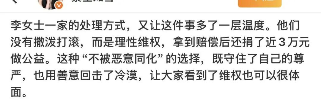 不少网友大赞李女士一家理性维权,用善意传递温暖。