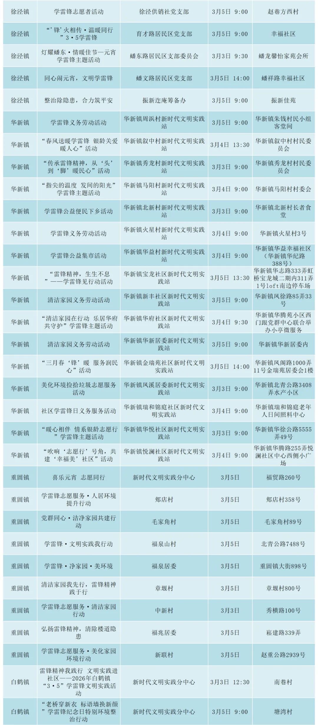 三月春风暖,青浦学雷锋文明实践活动又来啦!精彩活动就在你我身边!2026年“学雷锋・文明实践在行动”系列主题活动火热开启,形式多样、内容丰富、贴近群众,在家门口感受文明、参与实践、享受服务。欢迎广大市民积极参与、踊跃加入,共赴一场春天之约,为德润青浦建设添砖加瓦,让雷锋精神在青浦代代相传、生生不息!
