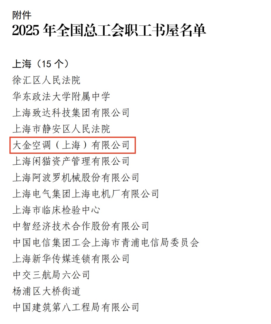 近日,中华全国总工会宣传教育部发布通报,公布2025年全国总工会职工书屋名单。上海市共有15家单位上榜,其中位于闵行区莘庄工业区的大金空调(上海)有限公司(以下简称:大金空调)成功入选。这个“职工精神家园”长什么样?一起来了解一下——