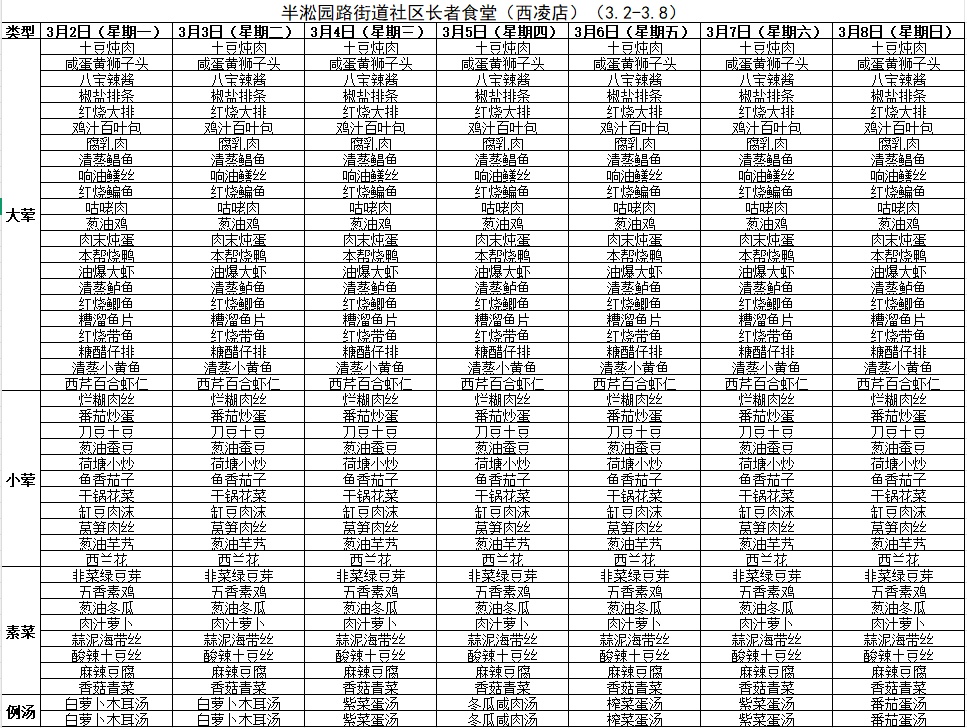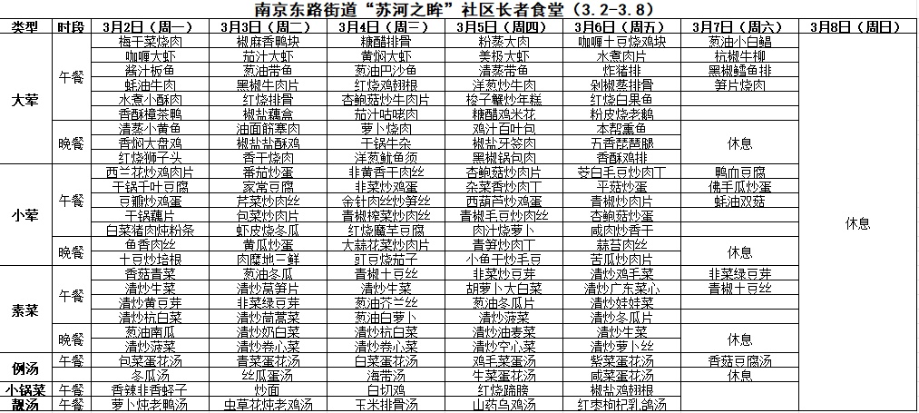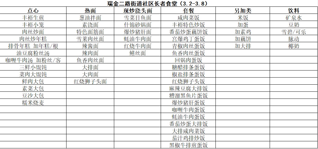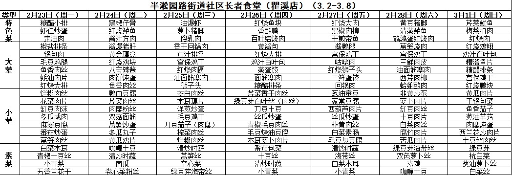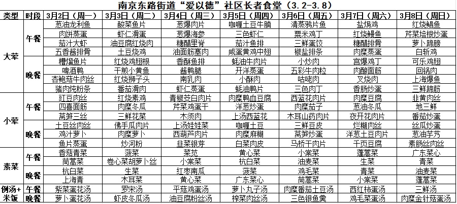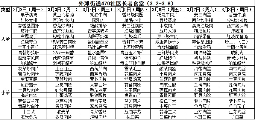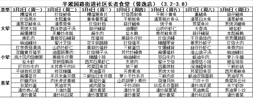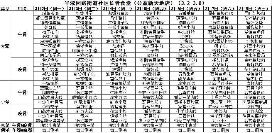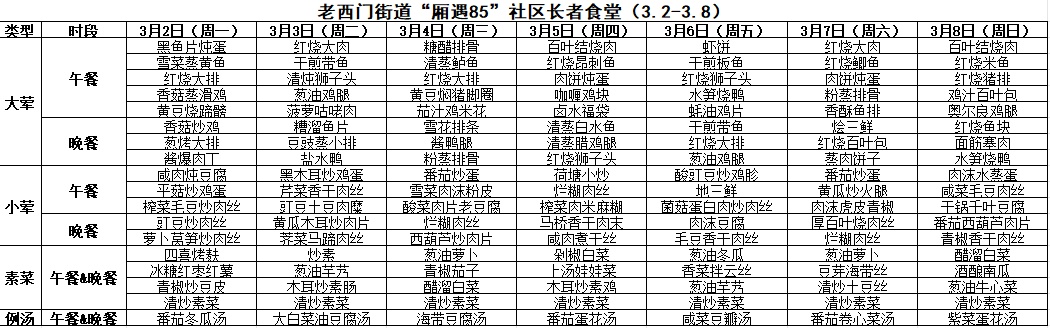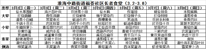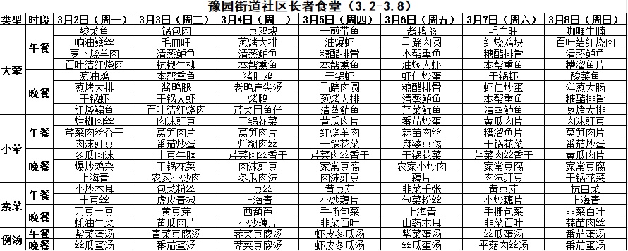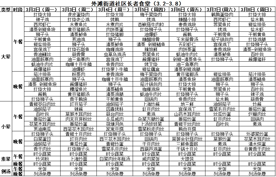 黄浦区社区长者食堂一周菜单(3.2~3.8)