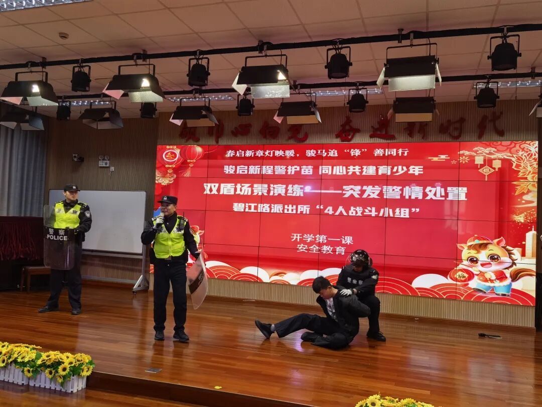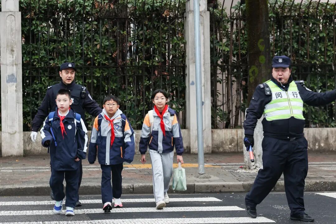 马跃新春,万象更新。3月2日,伴着清脆的上课铃声,闵行区426所中小学、幼儿园迎来了春季开学。闵行公安以交通疏导、隐患排查、安全教育为重点,持续落实“一校一策”综合治理措施,为广大师生、家长营造安全有序的开学及送学环境。 上午7时30分,位于上海最大开放社区康城出口区域的康城实验小学门口,送学车流迎来高峰。莘松派出所民警胡卓仁早早到岗,在车流中穿梭引导。 “来,小朋友当心,书包背好。家长的车不熄火,请即停即走!”他一边拉开车门护送孩子,一边示意家长快速驶离。过去,家长送学的非机动车叠加早高峰出行车流,常让小区主干道堵得水泄不通;如今,学校门口设置了非机动车“即停即走”区域和学生专用通道,加上有“护学岗”的民辅警、专职保安指挥车辆,通行效率明显提升。 据了解,闵行公安自去年起在全区范围内启动“一校一策”综合治理,以在校学生规模、居民反映集中、周边交通环境复杂等为核心评价维度,通过实地调研、协调资源、规范标准,逐校制定交通组织优化方案。据悉,闵行警方将在本学期内完成全区426所校园的综合治理,确保各项措施落地见效。 开学前,闵行公安交管支队会同属地派出所对全区校园周边道路、校车运行线路进行全面排查。“我们重点检查各校园门口的‘三区两通道’划分是否清晰,隔离设施、交通标志是否完善、信号灯配时是否合适,确保开学首日各岗位衔接到位。”闵行交管支队勤务路设大队大队长张晓伟表示。 开学首日,警方还深入学校广泛开展“开学第一课”活动,碧江路派出所的民警走进闵行区汽轮科技实验小学,举行以“骏启新程警护苗,同心共建育少年”为主题的活动。通过互动演练向学生普及交通安全、应急疏散等防范知识。 在另一场活动中,闵行公安分局情指中心无人机专班民警正向同学们讲解无人机反制设备的作用。“拿到无人机后第一件事该做什么?如何合规进行飞行报备?”民警结合案例,向学生普及低空安全知识,引导从小树立法治意识和安全观念。 警方将根据“一校一策”方案,全面落实护校要求,灵活运用固守执勤、视频巡查、无人机巡逻等方式,确保重点时段、重点路段警力全覆盖,全力筑牢新学期校园安全屏障。