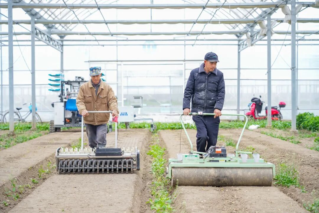 走进汇吉农场的智能化大棚,自走式精量播种机缓缓前行,一粒粒上海青种子精准播入提前松好的土壤里,短短几分钟就完成了传统农户半天的工作量。“以前种上海青,全靠人工撒种、覆土,不仅累,还容易播撒不均,出苗率参差不齐。现在设备播种,既省人力又保质量,一亩地播种只要十几分钟,效率比人工提升了近8倍。”农场工作人员一边操作设备,一边笑着介绍。