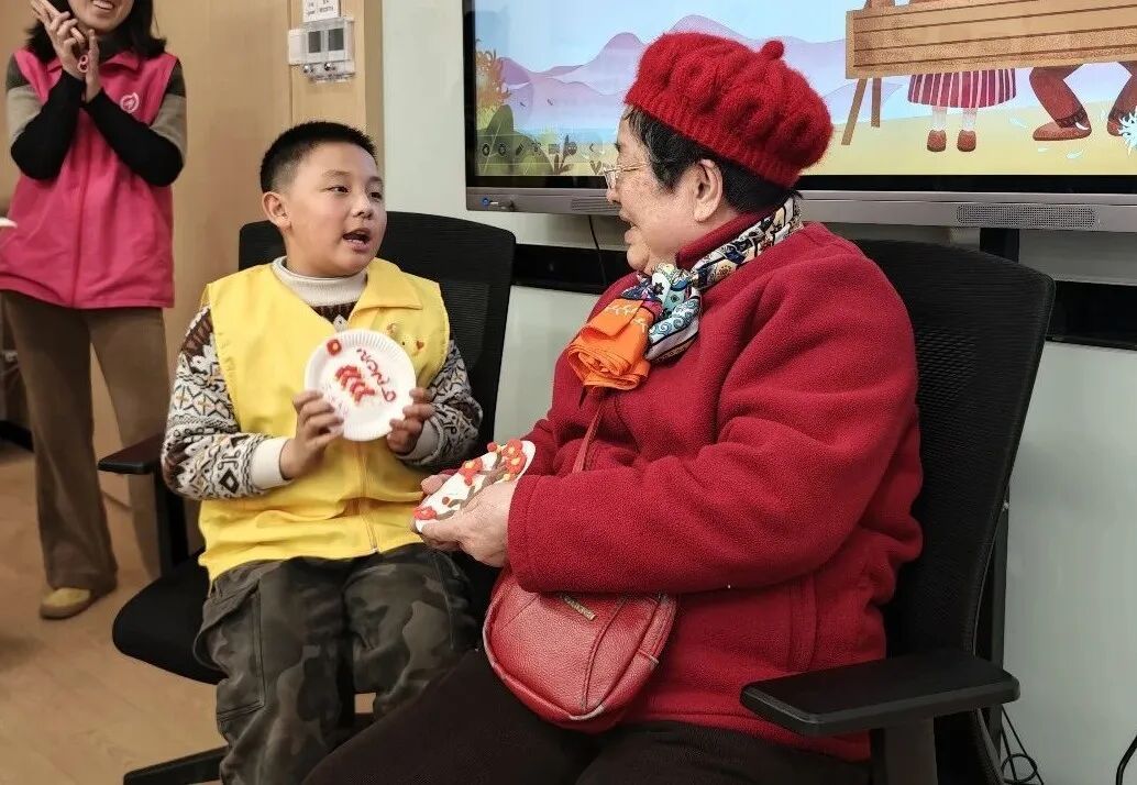 活动尾声,一老一少凑在桌前,拿起画笔携手创作手工盘子画。红色的梅花、新春的祝福跃然盘上,童真与沧桑在这一刻完美交融,敬老爱老的种子不仅在孩子们心中悄然生根,也让老旧小区的温度直达居民心底。