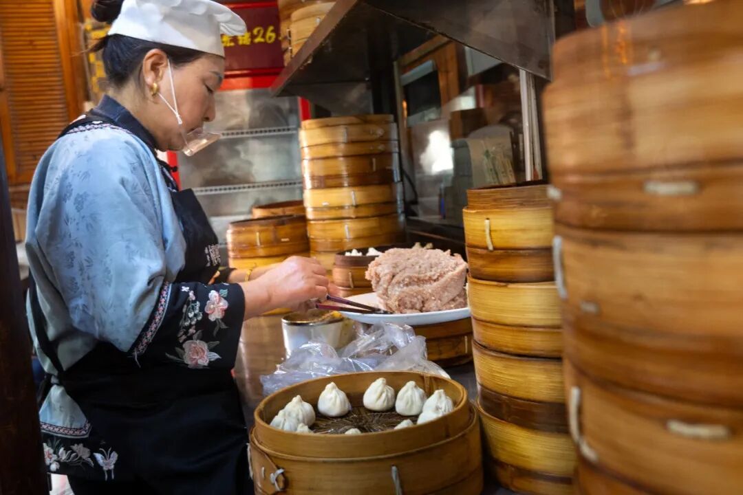 春节期间,南翔古镇的饭店里,蒸笼叠得高高,白雾不断从厨房涌出。服务员端着刚出笼的小笼穿梭席间,空气里混着肉香、面香和蒸汽,年味浓得化不开。咬开薄皮,吸一口滚烫的汤汁——那是跨越百年的味道,也是团圆最踏实的注脚。