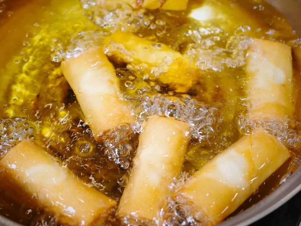炸春卷,更是年味的 “高光时刻”。油温烧至八成热,春卷沿锅边轻轻滑入,滋滋的声响伴着升腾的热气。用筷子不时翻动,待春卷通体金黄、外皮鼓起酥脆的气泡,就可以捞出控油了。刚出锅的春卷不能急着吃,吹一口气,咬上一小口,咔嚓一声,外皮的酥脆在嘴里炸开,内里的馅料鲜嫩多汁,在舌尖交织成最地道的嘉定年味。