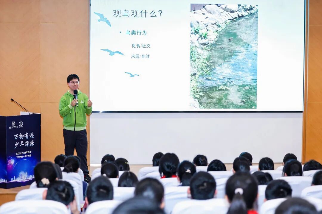 活动创新采用“馆校双师+少年探秘者”研学模式,80余名虹口初中生在上海自然博物馆专家与学校教师的联合带领下,参与“城市观鸟与鸟类保护”互动讲座。学子们围绕观鸟历史、实战技巧及保护举措三大维度,深入解码上海这座现代化都市的生态内涵,不仅掌握了城市观鸟诀窍,更立志为生物多样性保护贡献少年力量。
