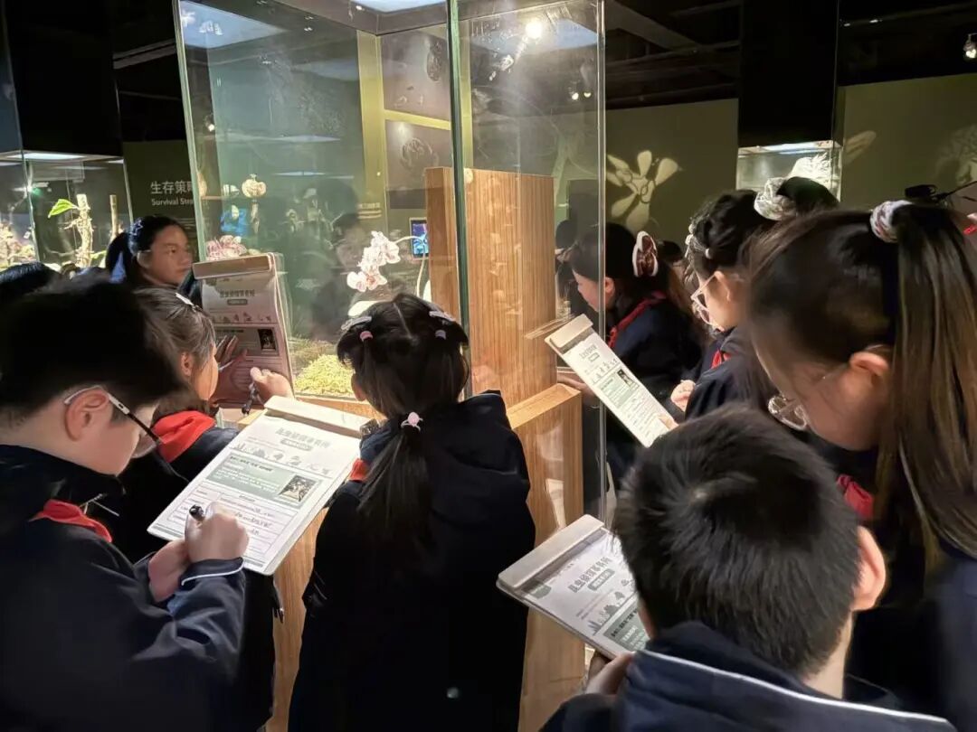 与此同时,40余名虹口小学生则开启博物馆解谜式动态课,他们化身“小小探秘者”,穿梭于各个展区,认真观察、积极探寻、大胆提问、理性探讨,在趣味解谜中寻找自然痕迹,将课堂变成一场充满惊喜的“寻证游戏”。在真实的自然情境中,孩子们的观察能力、推理能力得到充分锻炼,更深刻理解了生命与环境的共生关系,为科学素养的培养打下坚实基础。