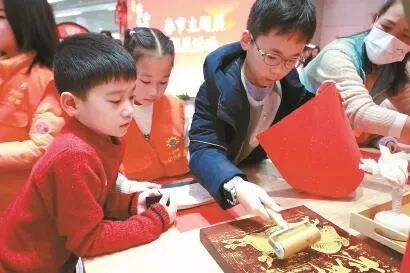 我们的春节主题造景区沉浸式还原老上海年俗场景,设有“猜腊八粥料”“送灶王”“扎老虎柏子花”“抽福卡”“年画拓印”“接财神”“走三桥”等趣味互动装置,希望能够让市民在亲身体验的过程中,重拾地道的上海年味。