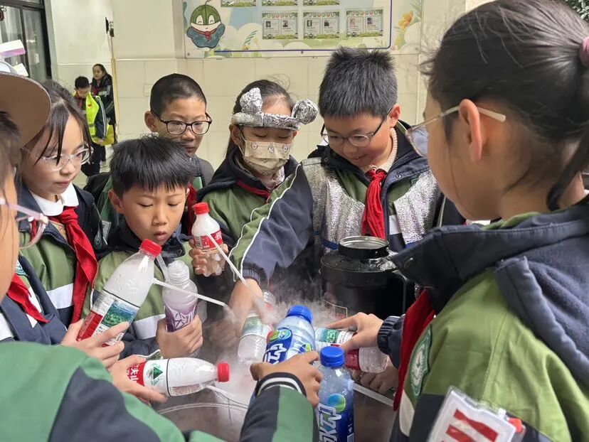 同学们身着自制科技服饰亮相,废旧材料变身创意机甲与科技配饰,环保与创意巧妙结合。操场上,智能机器狗校园巡游、干冰趣味实验等环节轮番上演,奇妙的科学现象引得孩子们阵阵欢呼,充分点燃了大家的探索热情。