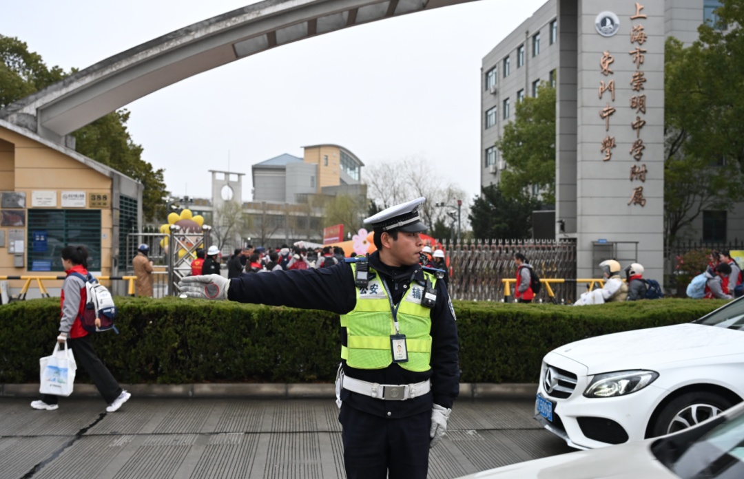 公安崇明分局交管支队民警顾浩天介绍:“针对开学首日人流、车流集中的情况,警方提前部署,定岗定人,对全区130余所学校周边道路进行了隐患排查,并为重点学校制定了‘一校一方案’。今天全体警力上岗,全力开展校园周边排堵疏导,确保交通顺畅。”