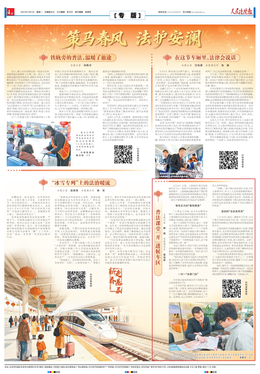 2月4日,立春。上海南站“重点旅客候车区”内,一场别开生面的普法小课堂正悄然展开。上海铁路运输法院的干警们带着最新的《人民法院报》和《铁路出行普法指南》宣传册来到这里,为候车的旅客上了一堂关于搭乘高铁出行的法治“必修课”。