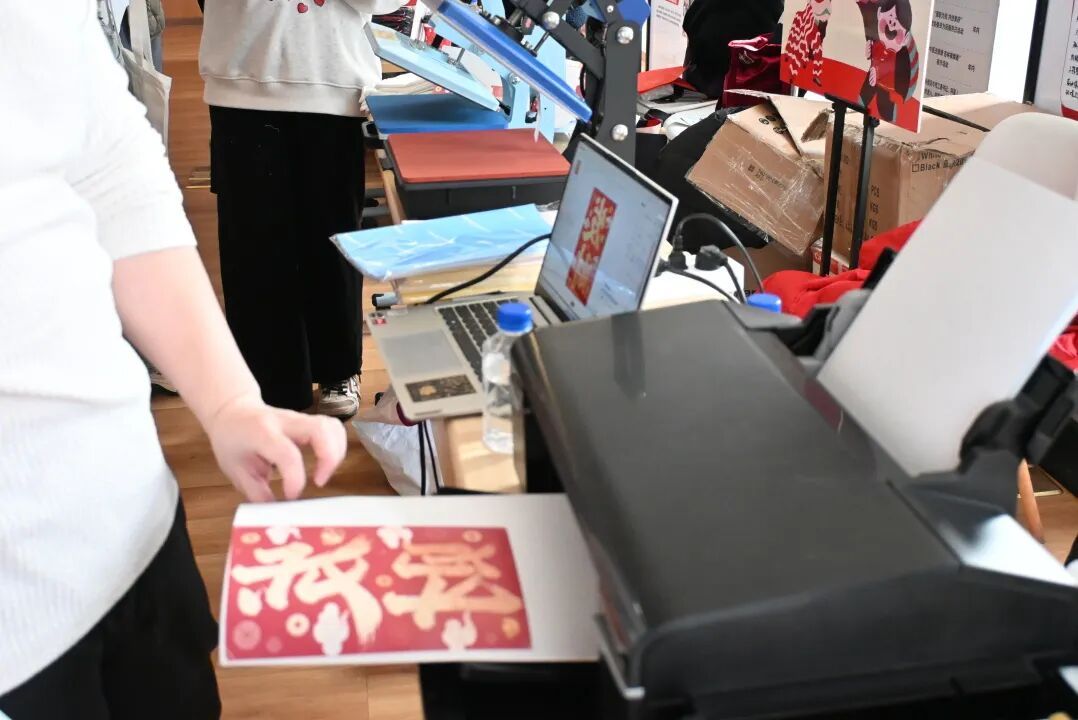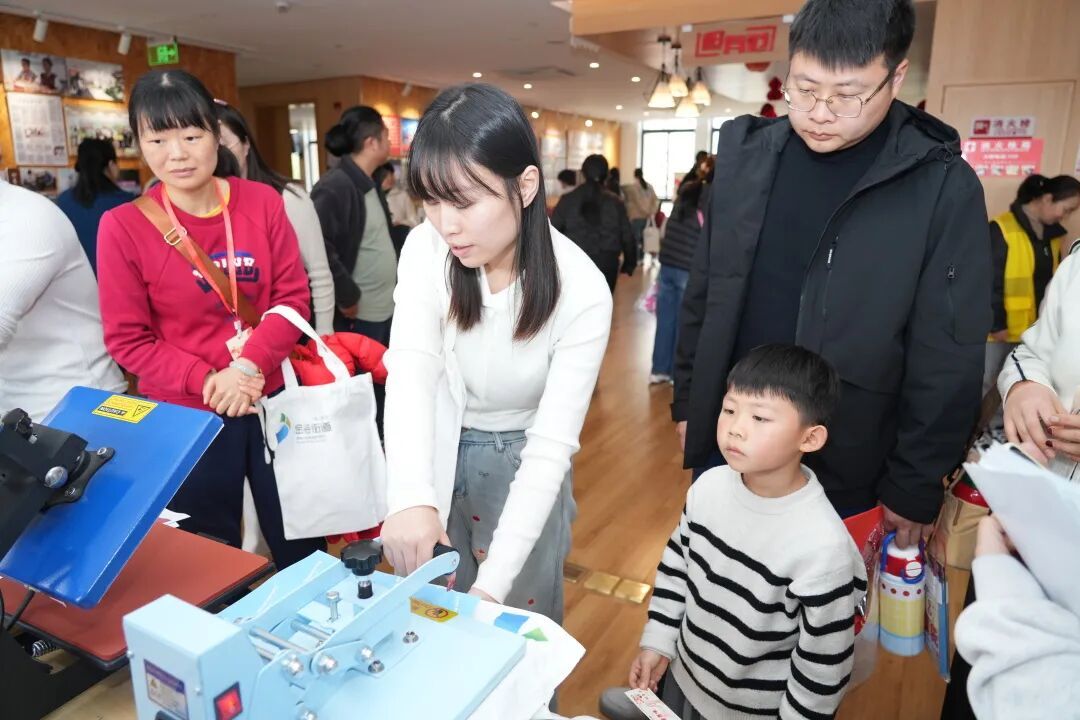 当传统年味邂逅现代科技,便碰撞出别样的火花。AI热转印区,孩子们在屏幕上勾勒骏马奔腾的图案,再通过热转印技术,将创意定格在帆布袋与T恤上。指尖轻触间,传统意象与科技美学相融,让新春祝福有了更个性的表达。