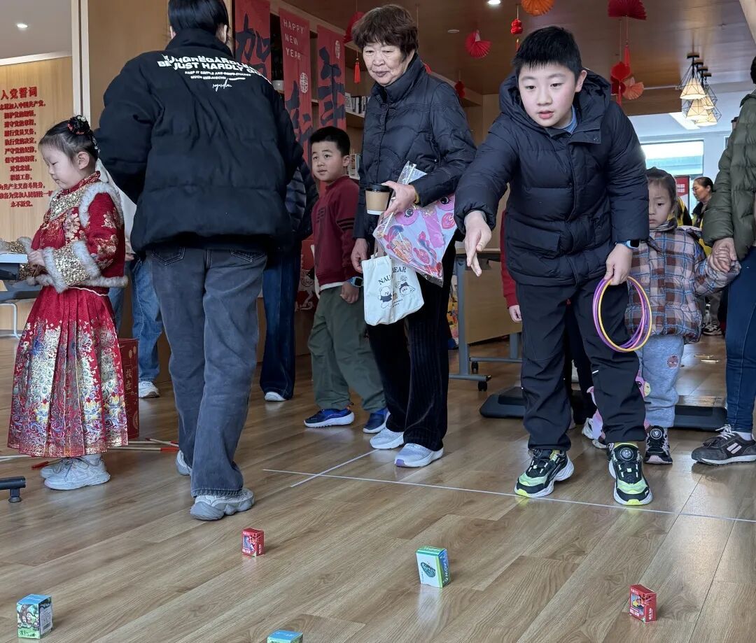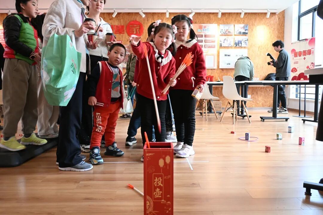 朱红的投壶静立案前,箭矢破空的轻响里,藏着古人的雅致意趣;彩圈翻飞间,套中的不仅是竹筒与福袋,更是“马到成功”的美好祈愿。“马年好运圈”前,孩子们屏息凝神,每一次精准抛出,都似在为新岁积攒福气,笑声与喝彩声,让古风游戏焕发出鲜活的生命力。