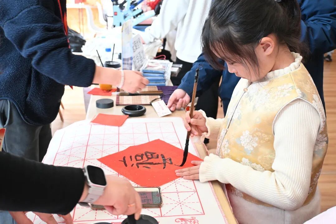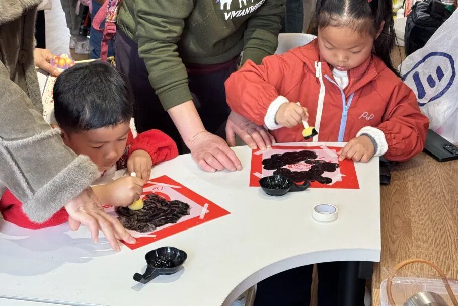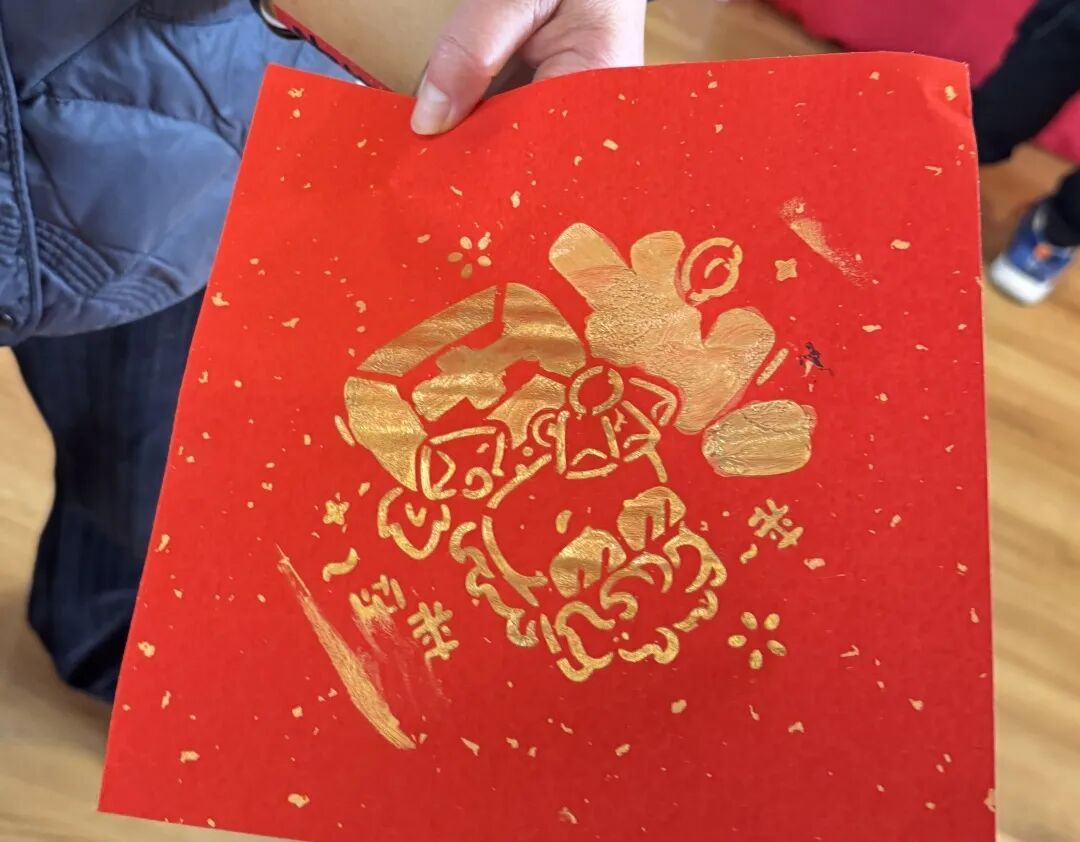 拓印板上的“福”字与骏马图案,在墨色晕染间变得鲜活。孩子们手持拓印工具,轻轻按压、缓缓揭起,将吉祥寓意印在宣纸上。每一道墨痕,都是对新春的期许,也是对传统文化的深情赓续