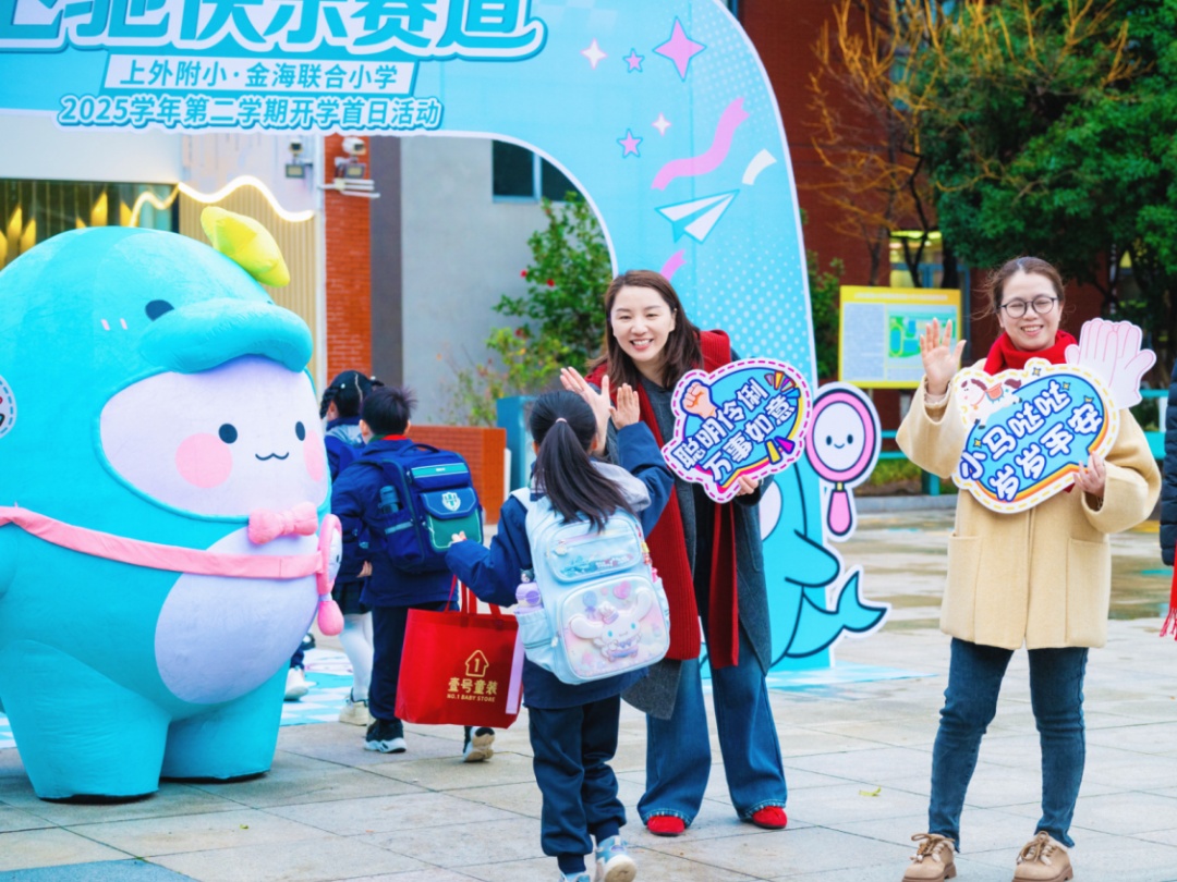 上外附小・金海联合小学开学首日以“马力全开 飞驰快乐赛道”为主题,深化导师制引领,师生共启:“新年第一赞”,点燃动力;“新年第一课”智慧蓄能;“新年第一抱”,传递温暖;“新年第一赛”焕新未来;“新年第一跑”,追风向前。全校师生聚力同心,化不可能为可能,共同奔跑2026km,寓意奔向2026,共赴新学期壮阔山海。