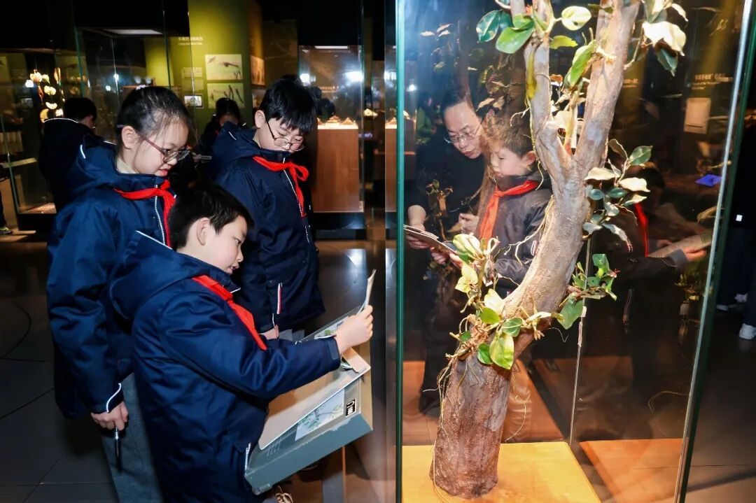 开学首日,虹口区2026年春季学期“开学第一课”也选在上海自然博物馆开课。活动采用“馆校双师+少年探秘者”研学模式:80余名初中生跟着自然博物馆专家与学校教师,参与“城市观鸟与鸟类保护”互动讲座;40余名小学生则开启博物馆解谜式动态课,化身“小小探秘者”,穿梭于各个展区,课堂变成一场充满惊喜的“寻证游戏”。