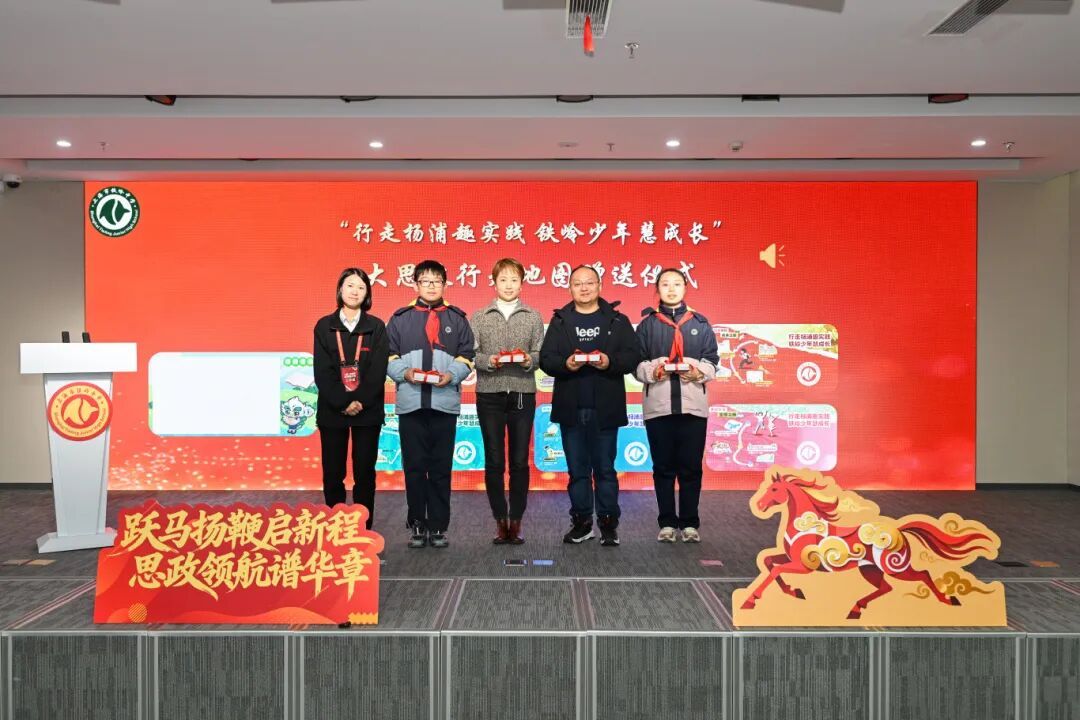 学生带来原创情景剧《寻迹城市 逐梦杨浦》,展现杨浦转型发展历程。上海人民城市实践展示馆馆长杨静为学生代表、家长代表赠送“行走杨浦趣实践 铁岭少年慧成长”大思政行走地图,地图串联杨浦区“人民城市·行走的大思政课”主题实践活动打卡地标。